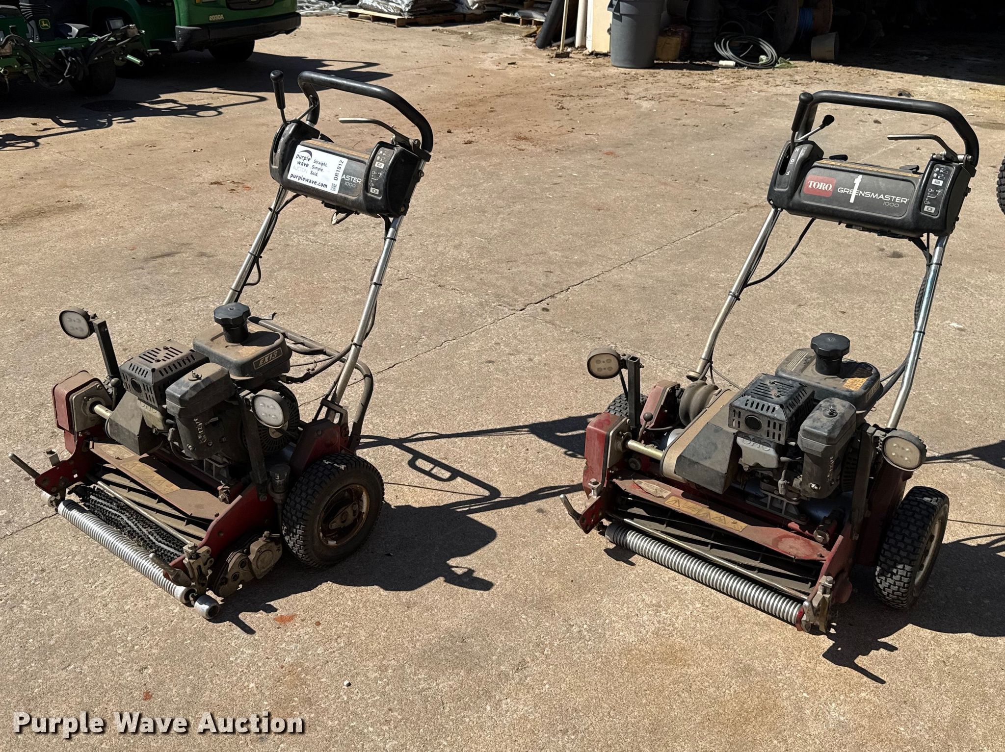 Purple Wave is selling a used Lawn and Garden in Oklahoma. This item is a (2) reel mowers with the following: Hours: 1,148 on meter, Cutting width: 22", Serial: 402527977