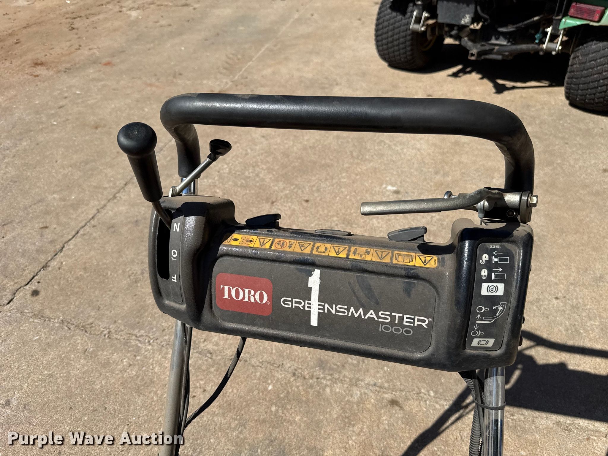 (2) reel mowers. 2018 Toro Greensmaster 1000. Hours: 1,148 on meter, Cutting width: 22", Serial: 402527977. Engine Subaru EX13, Cylinders: 1, Fuel type: Gas. Chassis PTO. Features Self- propelled, Grass bagger. Tires Size: 3.00/3.25-6. 2018 Toro Greensmaster 1000 Hours: 1164 on meter, Cutting width: 22", Serial: 402527977. Engine Subaru EX13, Cylinders: 1, Fuel type: Gas. Chassis PTO. Features Self- propelled, Grass bagger. Tires Size: 3.00/3.25-6. Notes Unknown operating condition. City of Edmond. Edmond, OK 73034