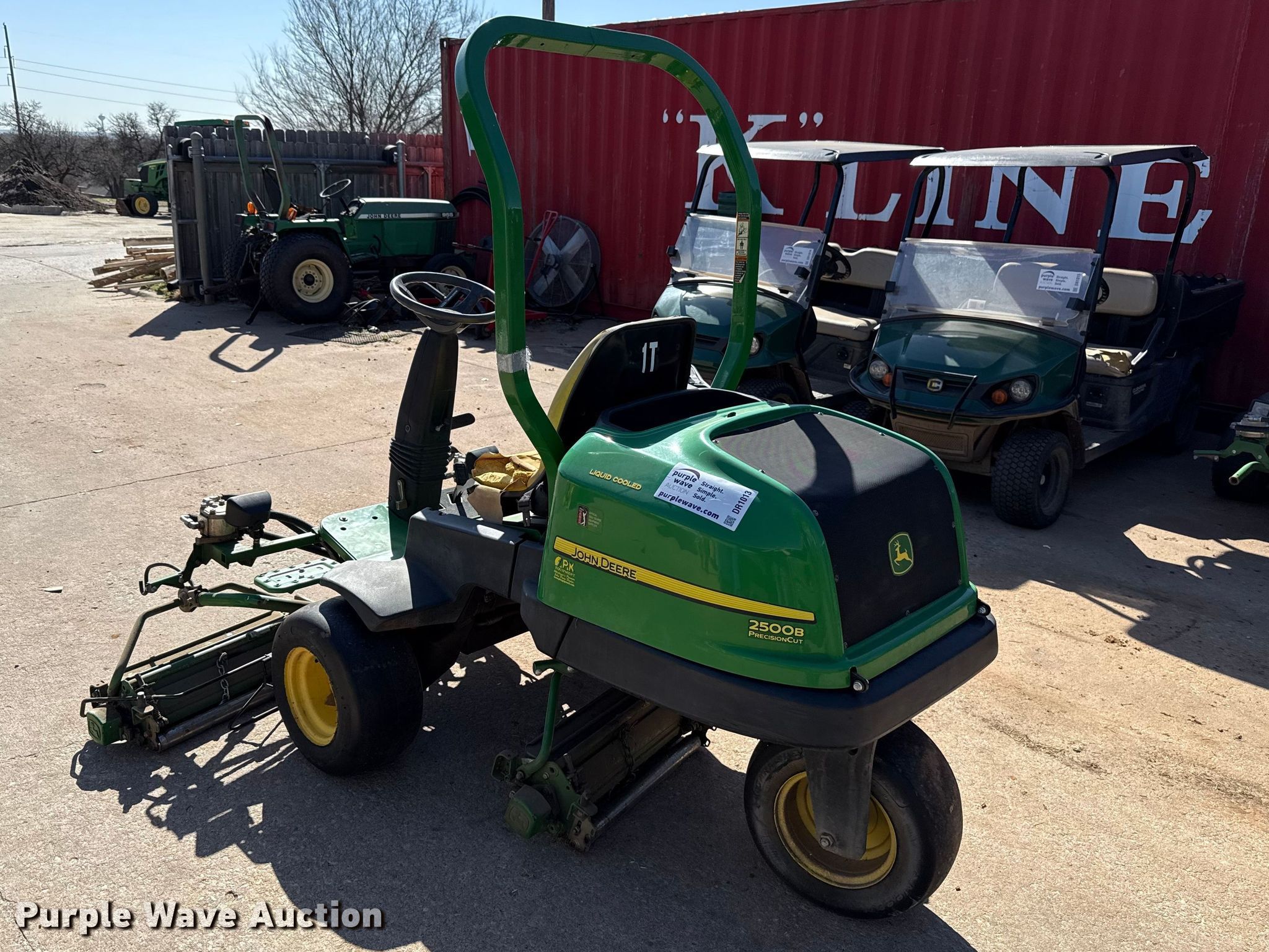 Purple Wave is selling a used Commercial Turf Mower in Oklahoma. This item is a John Deere 2500B reel mower with the following: Hours: 3,021 on meter, Cutting width: 72", Serial: 1TC250BGCGT095421
