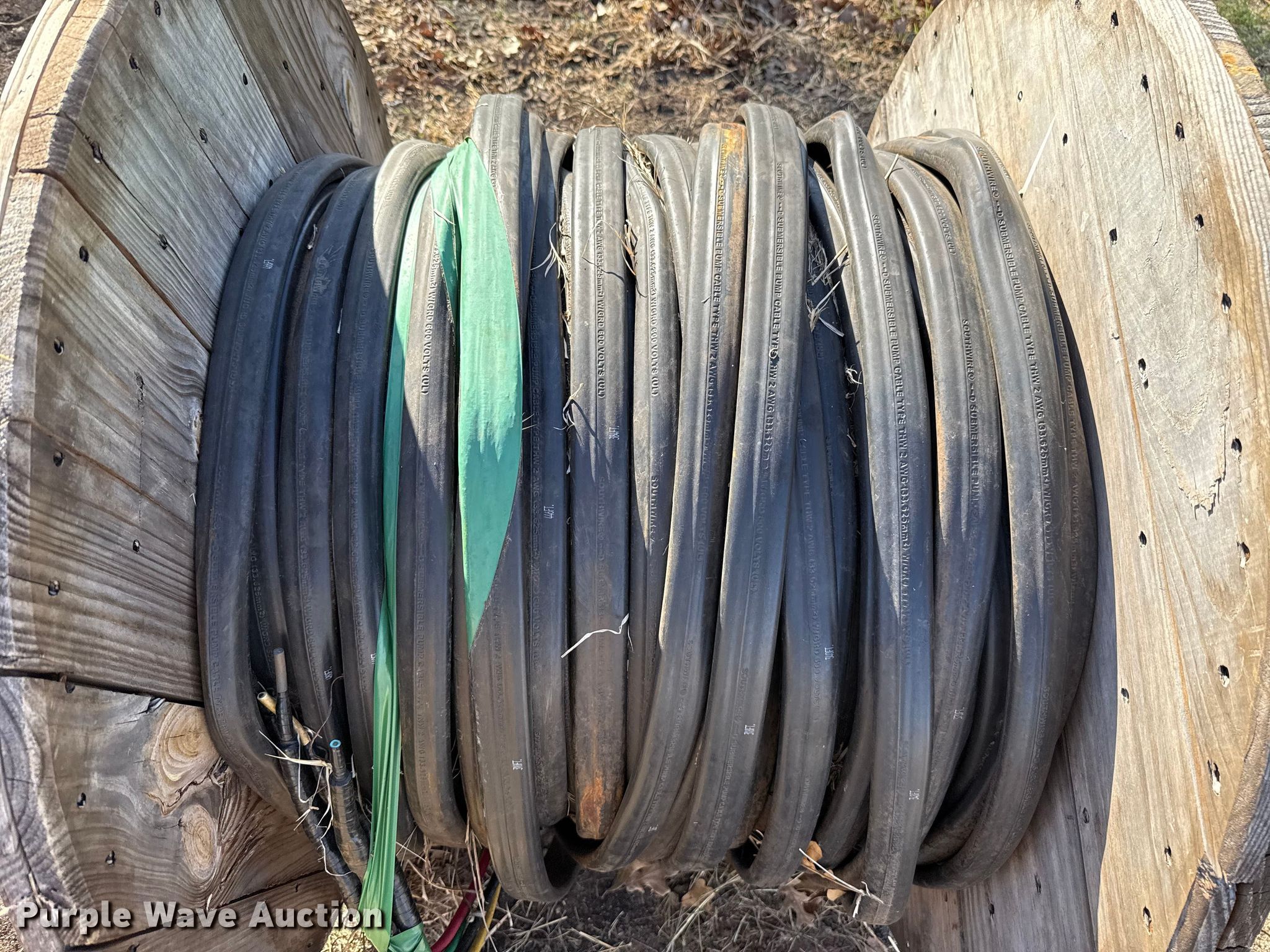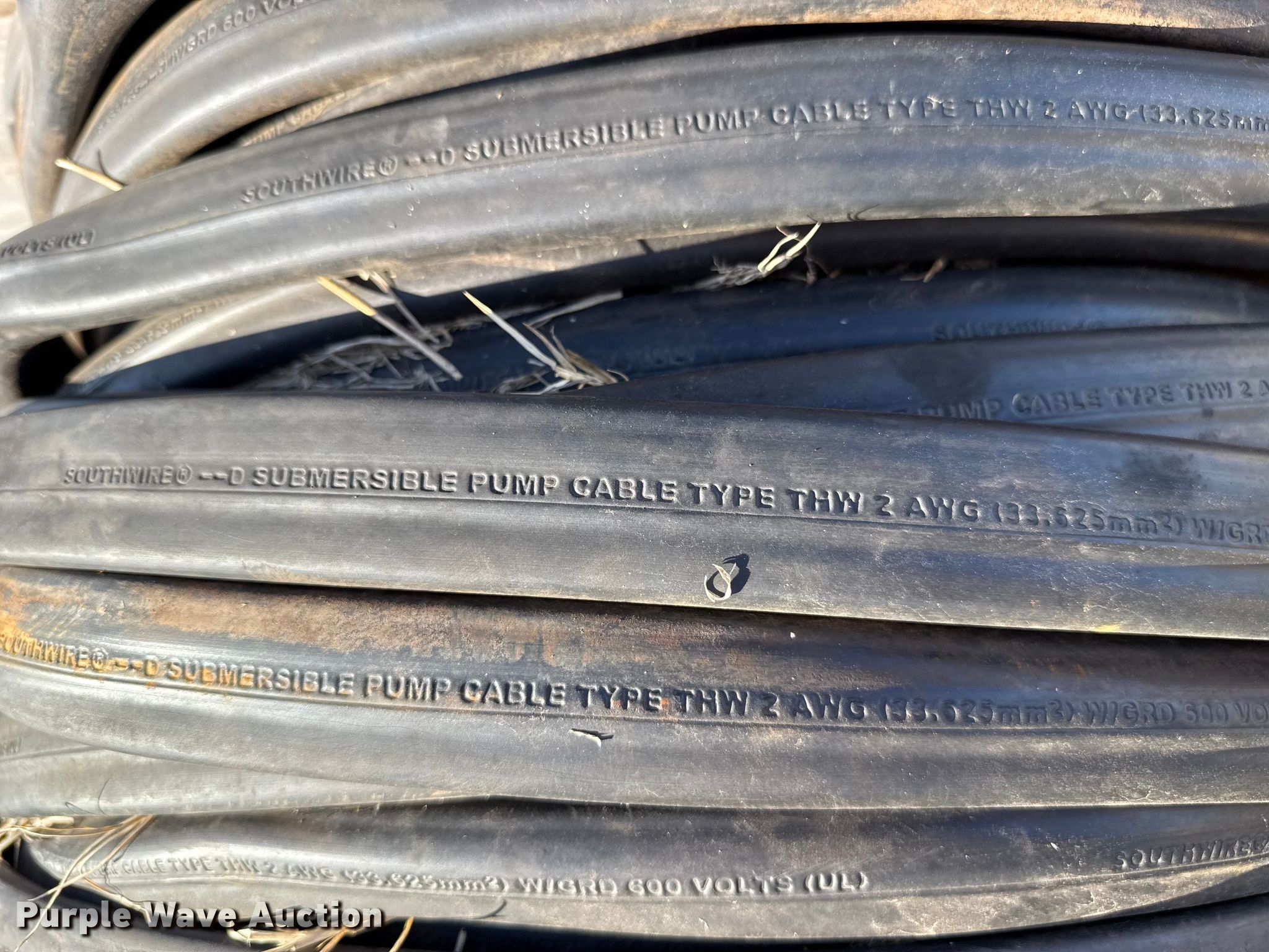 Purple Wave is selling a used Building Materials in Oklahoma. This item is a Southwire D submersible pump cable with the following: THW 2 AWG, Volts: 600