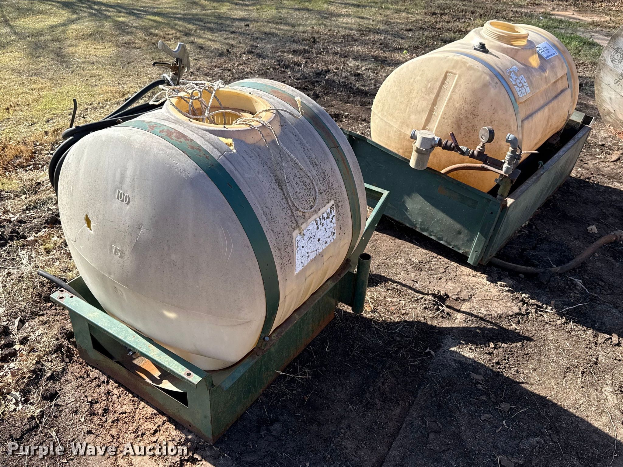 Purple Wave is selling a used Tanks in Oklahoma. This item is a (2) water tanks on skids with the following: Capacity: 125 gallons