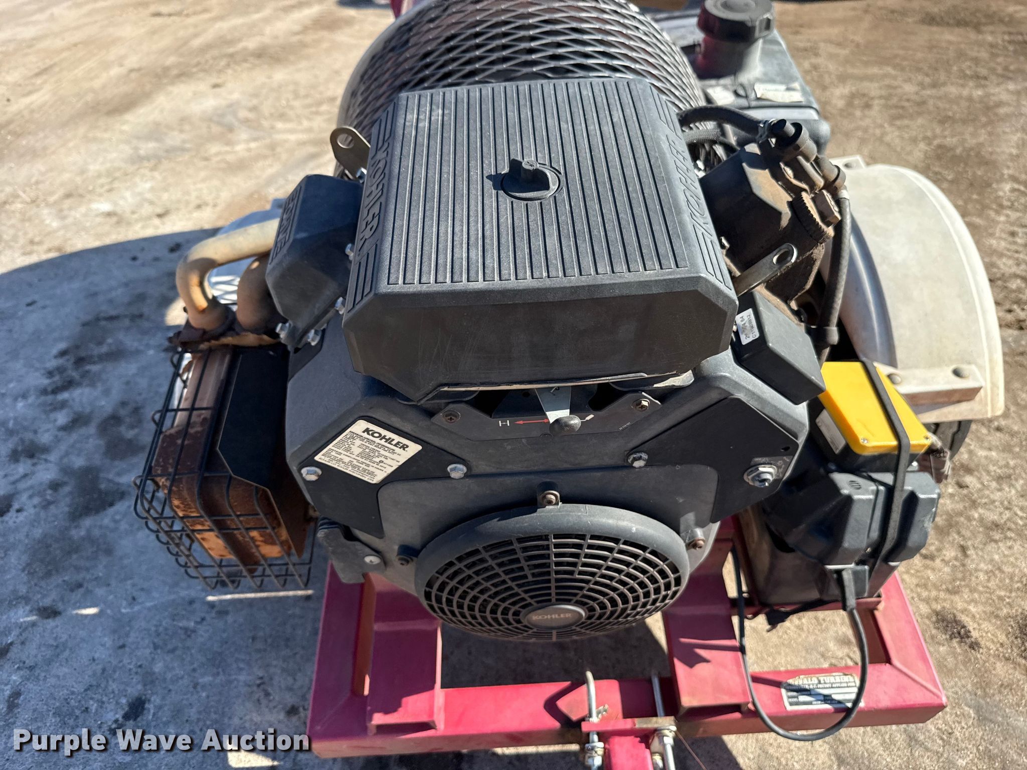 Buffalo Turbine CKB4 debris blower. Serial: 21140. Dimensions Overall Length: 6' 8", Width: 46". Engine Kohler CH740, Serial: 4222305601, Displacement: 725cc, Cylinders: 2, Fuel type: Gas. Tires Size: 18.5X8.5-8. Notes Key missing, Dead battery, Unknown operating condition. City of Edmond. Edmond, OK 73034