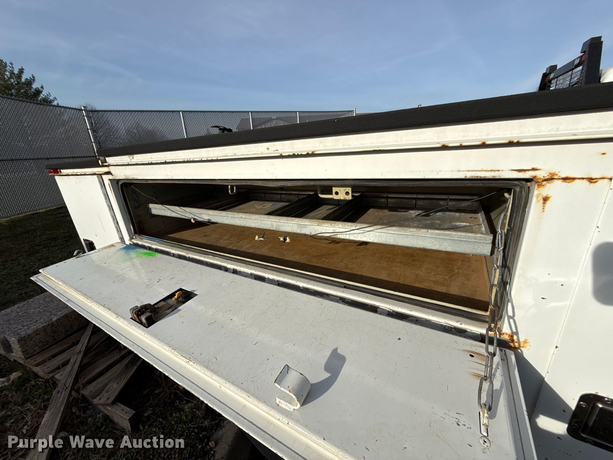 This 2006 Ford F350 Super Duty utility bed pickup truck will sell to the highest bidder regardless of price.