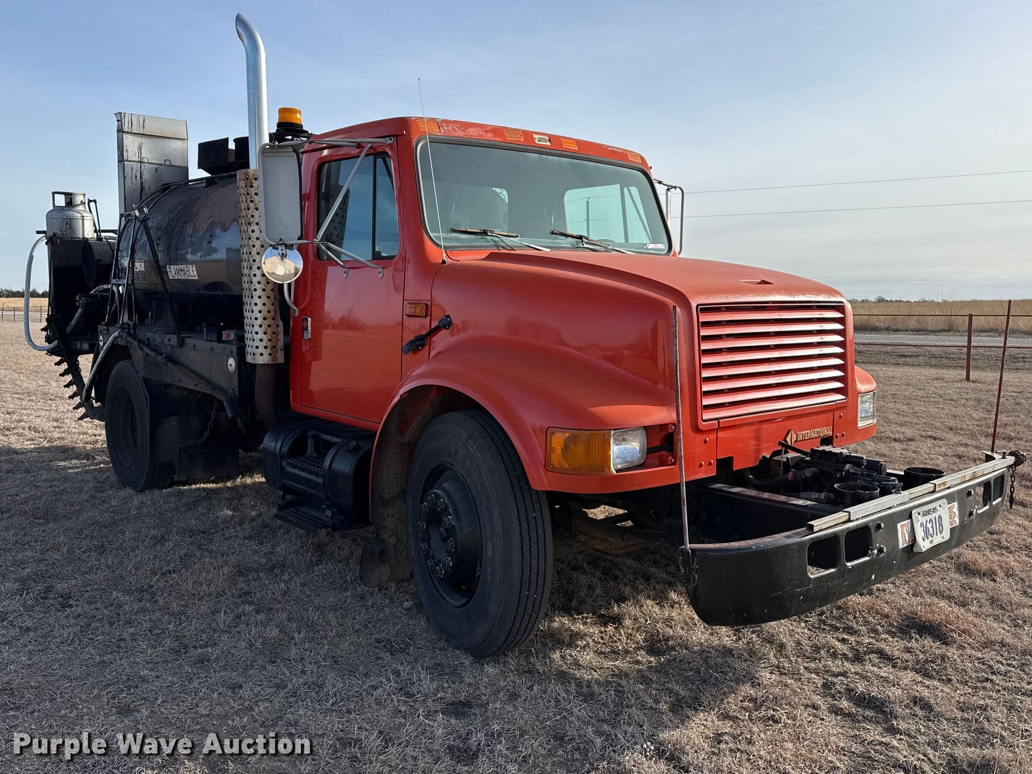 Purple Wave is selling a used Oil Distributor Truck in Kansas. This item is a 1990 International 4600 oil distributor truck with the following: Miles: 56,288 on odometer, Hours: 6,173 on meter, VIN: 1HTSAZRL3LH283588
