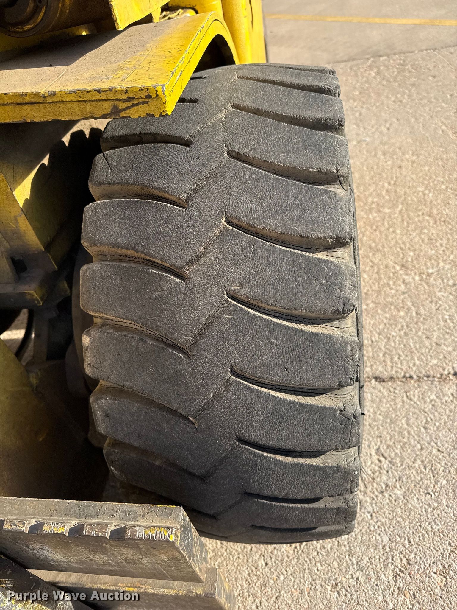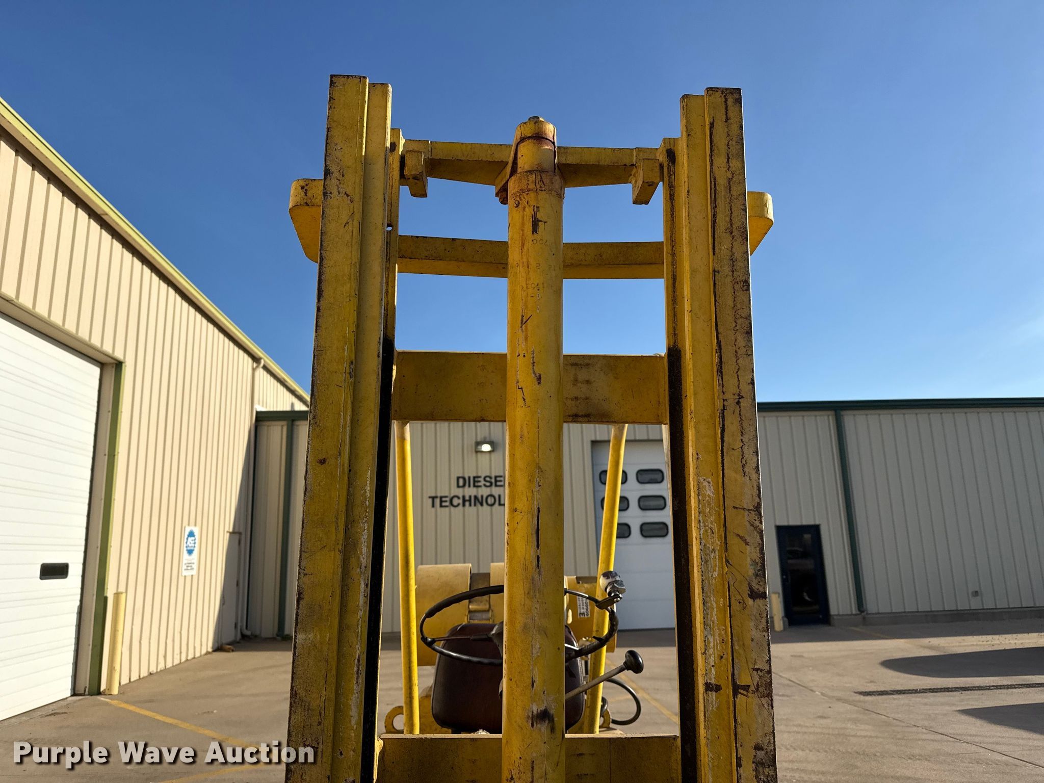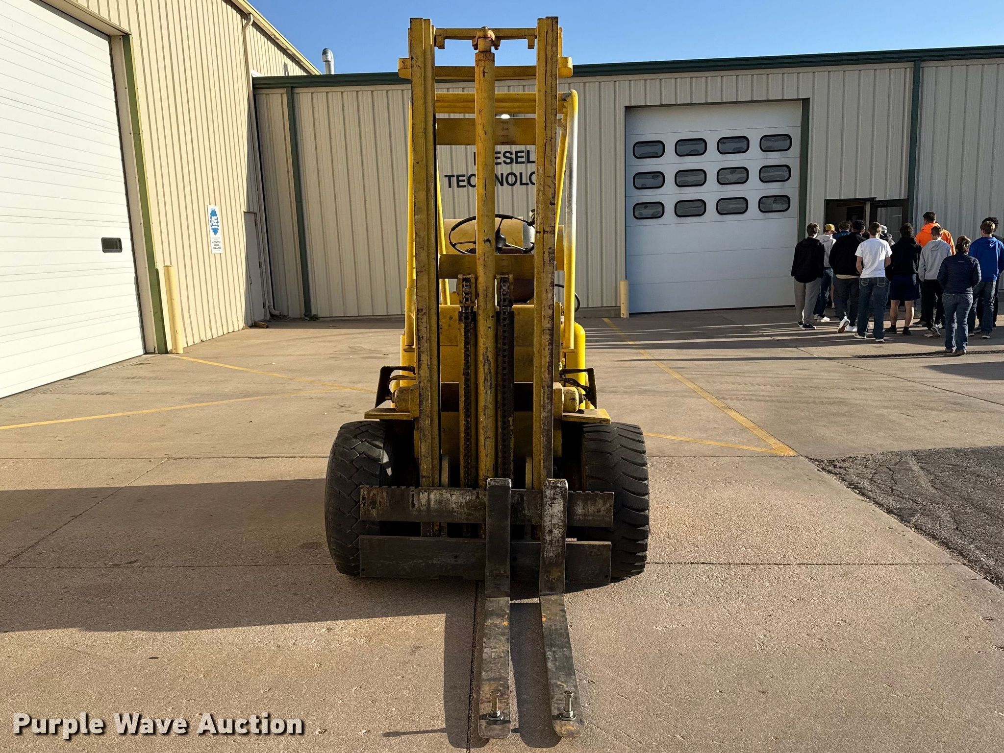 Allis Chalmers FPL40-24-2PS forklift. Hours: 1,624 on meter, Serial: 34615000. Engine Cylinders: 4, Fuel type: LPG LP bottle: Not included. Transmission Powershift. Operators station Canopy. Features Maximum lift capacity: 4,800 lbs, Maximum lift height: 82", Mast stages: 2, Mast tilt, Fork length: 42". Tires Front: 30x11.50-14.5, Rear: 6.50-10. Notes 72" fork extensions included. Dodge City Community College. Dodge City, KS 67801