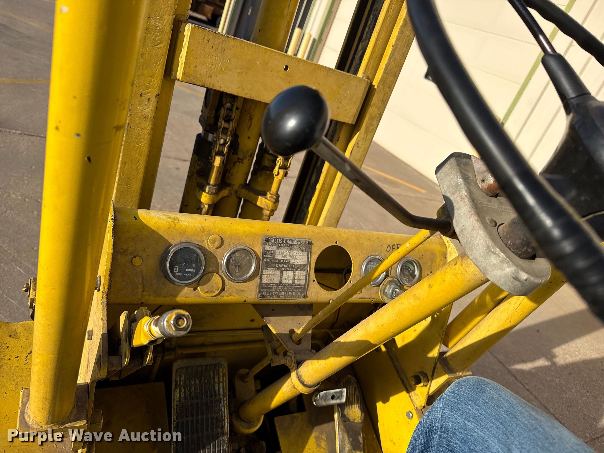Purple Wave is selling a used Warehouse Forklift in Kansas. This item is a Allis Chalmers FPL40-24-2PS forklift with the following: Hours: 1,624 on meter, Serial: 34615000
