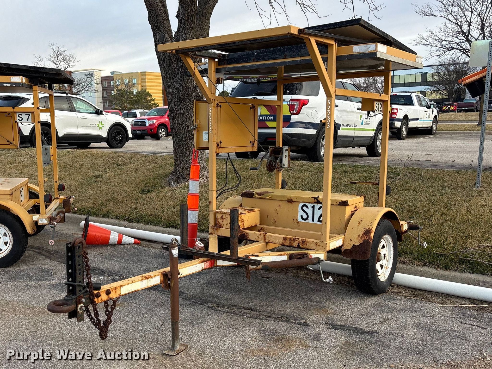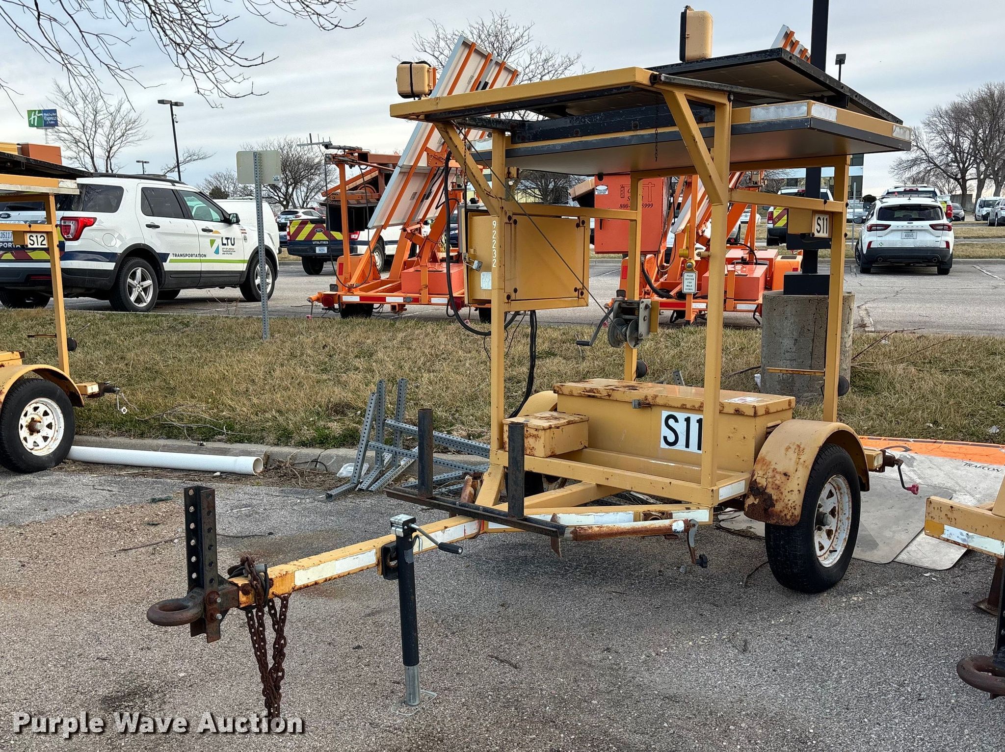 (4) Ver-Max PCMS 548RS message boards. Serial: 2S9US11181S132052, Serial: 2S9US11141S132047, Serial: 2S9US11161S132051, Serial: 2S9US11142S132079. Features Hitch: Pintle, Height: 42", Length: 72". Tires Size: 205/75R15. Notes Flat tires, Unknown operating condition. This is worksite support equipment and will not come with a title. Transfer of ownership documentation will be a bill of sale. City of Lincoln - Fleet Services. 901 West Bond Street. Lincoln, NE 68521