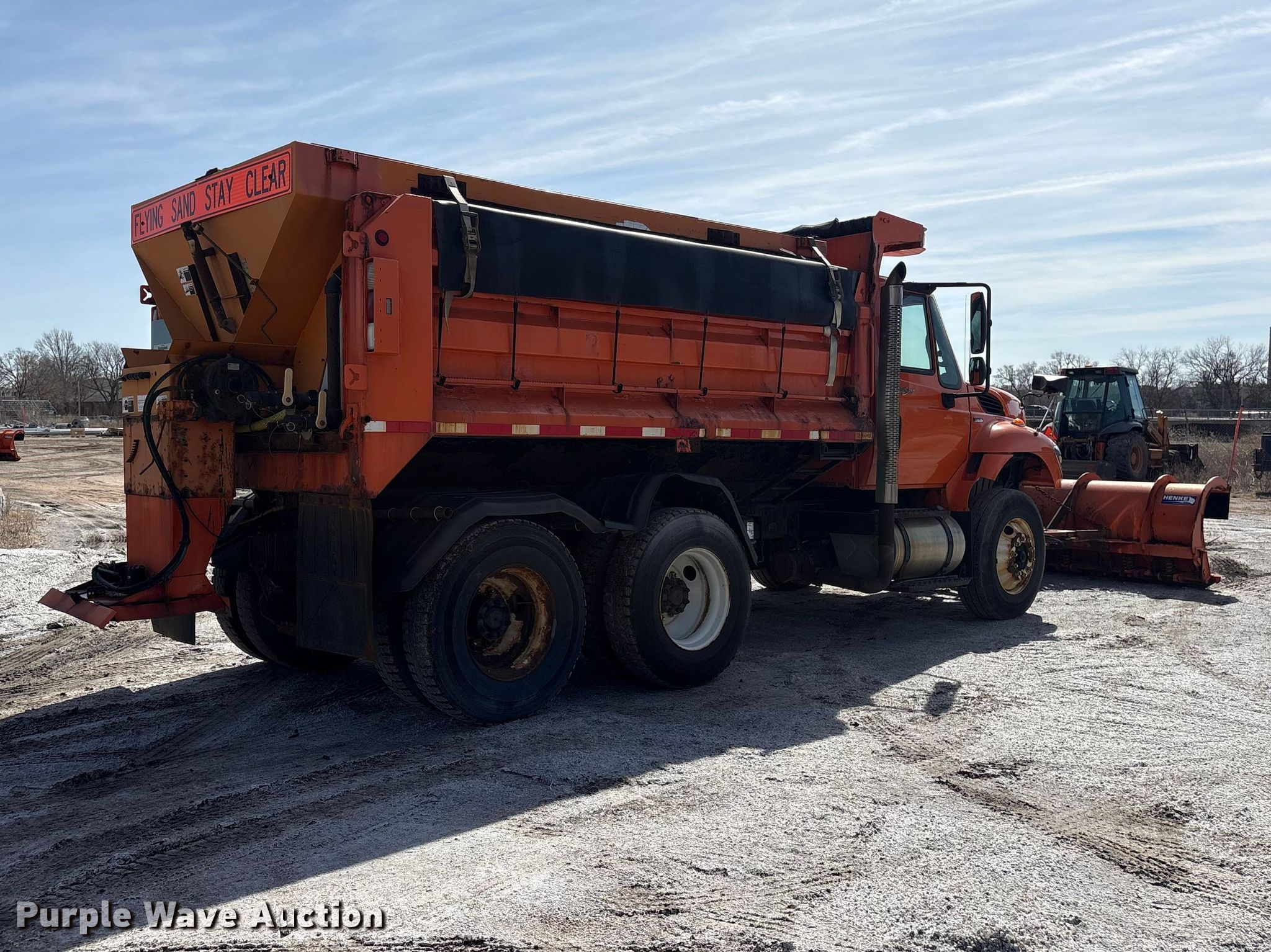 2009 International WorkStar dump truck. Miles: 59,123 on odometer, Hours: 5,616 on meter, VIN: 1HTWGAAR19J180074. Engine International DT466, Serial: 466HM2U3067766, Displacement: 7.64L, Cylinders: 6, Fuel type: Diesel. Transmission Automatic. Chassis Axles: Tandem, Differential lock: Inter-axle, Suspension: Spring over walking beam, Brakes: Air, PTO, GVWR: 53,220 lbs FAWR: 13,220 lbs, IAWR: 20,000 lbs, RAWR: 20,000 lbs, Wheelbase: 430". Interior Heat, Heated mirrors, Power windows, Cruise control, Brake controller. Features Bed Dump bed, Length: 13', Width: 96", Side height: 44", Bed type: Steel, Roll tarp, Ram: Dual, End gate: Air operated, Spreader Canimex CC1313-50H-189002, Plow Henke, Width: 120". Tires Size: 11R22.5. Notes Alternator issues, does not charge , Non-operational roll tarp. Nebraska title. Title distribution may be delayed up to 14 days from verification of funds. City of Lincoln - Fleet Services. Lincoln, NE 68504