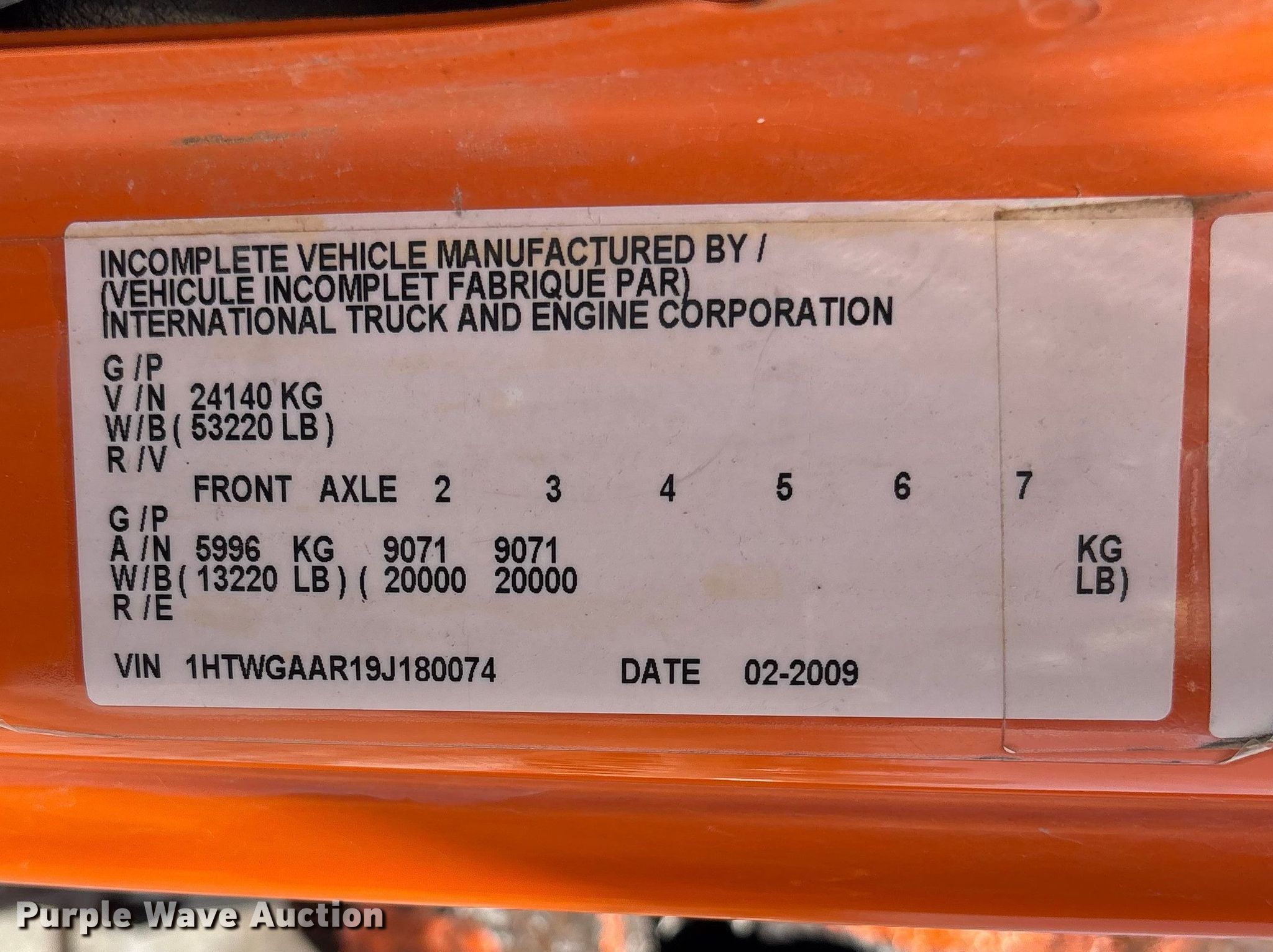 Purple Wave is selling a used Construction Dump Truck in Nebraska. This item is a 2009 International WorkStar dump truck with the following: Miles: 59,123 on odometer, Hours: 5,616 on meter, VIN: 1HTWGAAR19J180074