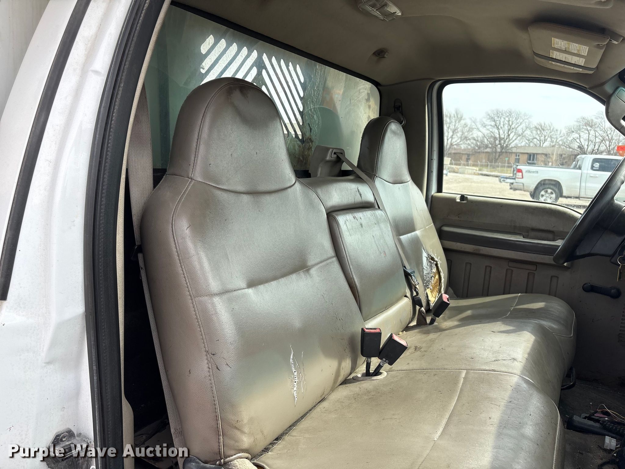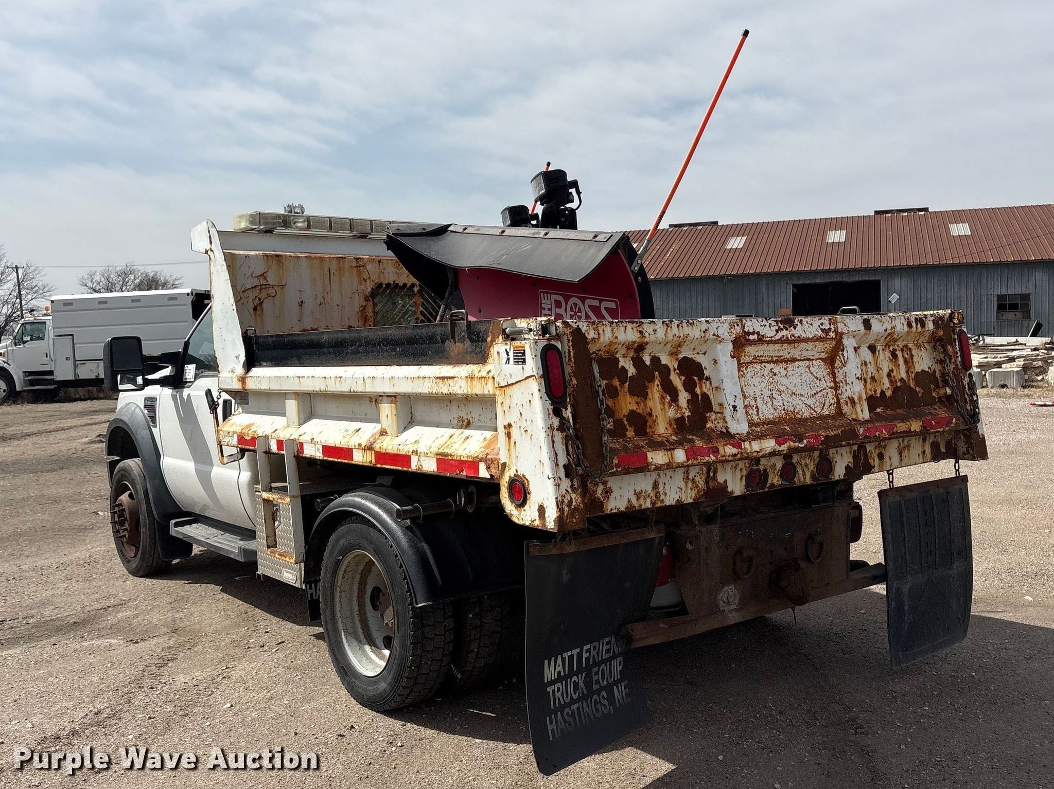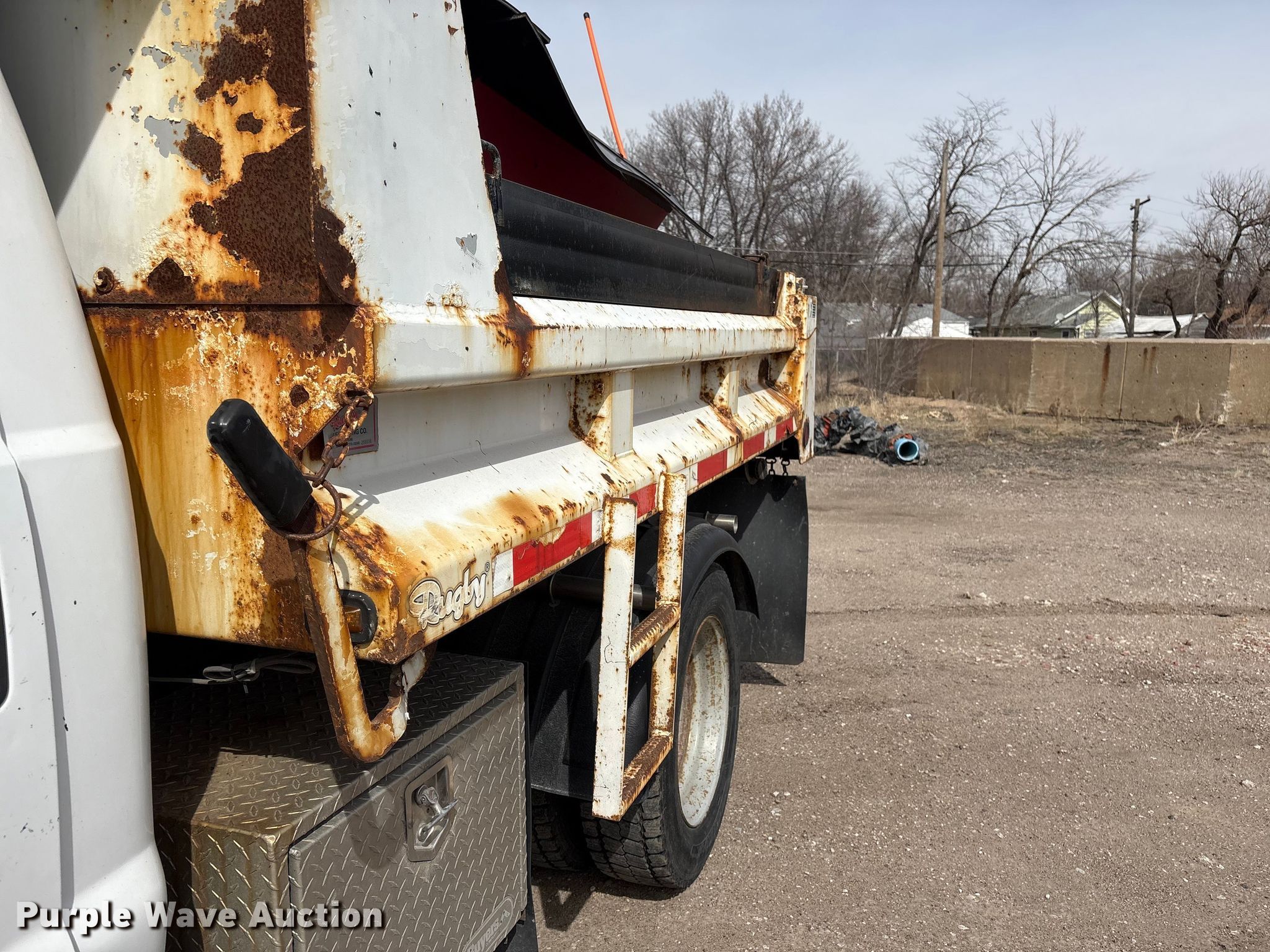 2008 Ford F450 Super Duty dump truck. Miles: 142,979 on odometer, Hours: 15,826 on meter, VIN: 1FDXF47R08EC66556. Engine Displacement: 6.4L, Cylinders: 8, Fuel type: Diesel. Transmission Automatic. Chassis Axles: Single, Suspension: Spring, Brakes: Hydraulic, GVWR: 16,000 lbs. Interior AC, Heat, Heated mirrors. Features Bed Dump bed, Rugby HR540, Serial: 259898, Length: 9', Width: 96", Plow Boss V-Plow. Tires Size: 225/70R19.5. Notes Dash warning indicator: Check engine, Airbag, Reduced engine power. Nebraska title. Title distribution may be delayed up to 14 days from verification of funds. City of Lincoln - Fleet Services. Lincoln, NE 68504