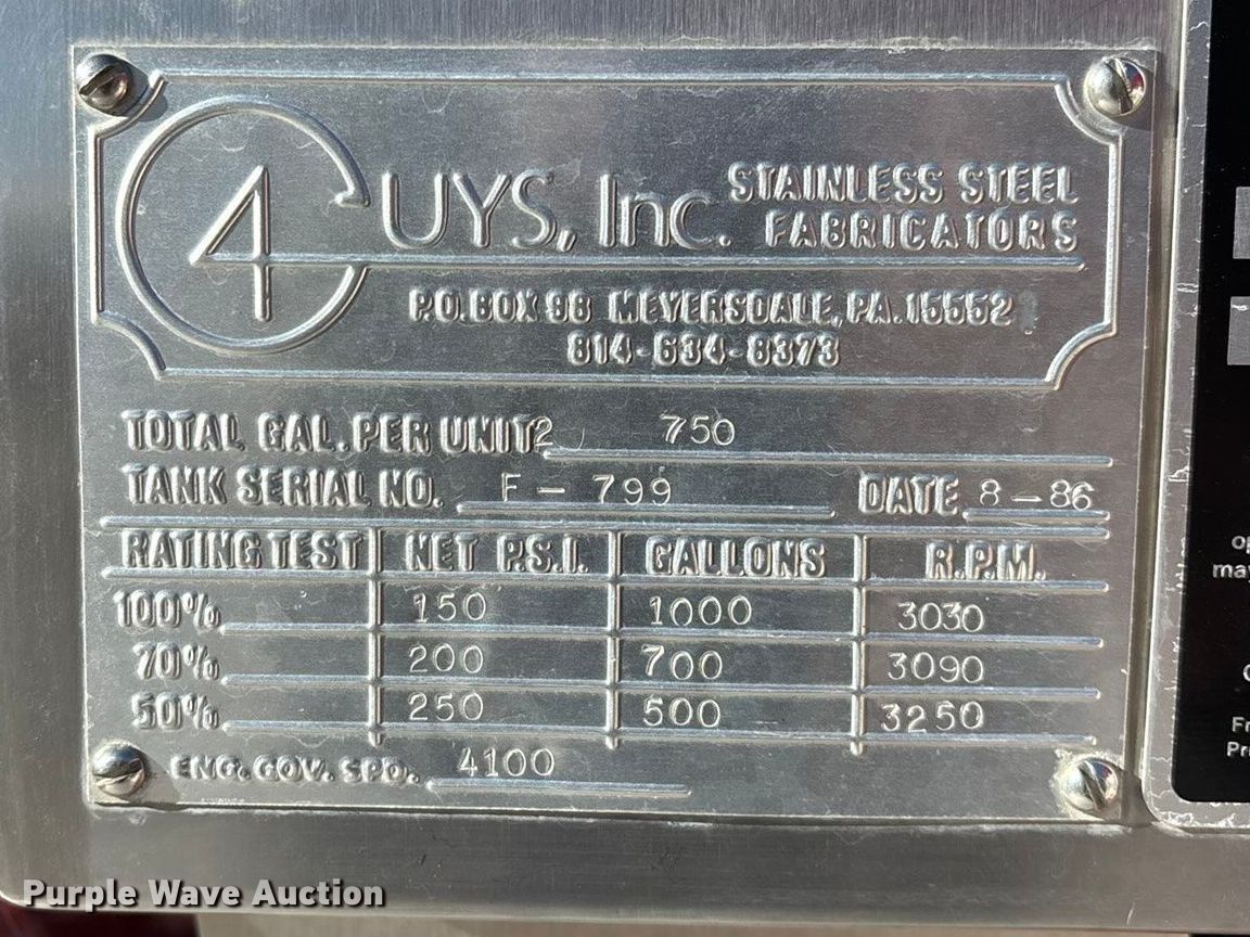 1969 GMC 6500 V-Eight pumper fire truck. Miles: 10,822 on odometer, Hours: 1,325 on meter, VIN: CE60V-A093402, Unit #: Engine 1. Engine Cylinders: 8, Fuel type: Gas. Transmission Manual, Speed: 5. Chassis Axles: Single, Suspension: Spring, Brakes: Hydraulic, GVWR: 24,000 lbs. Interior Heat. Features Fire truck body 4 Guys, Inc., Tank Capacity: 750 gallons, Pump, PA/ siren controls. Tires Size: 9.00R20. Notes Non-operational parking brake. Missouri title. Title distribution may be delayed up to 14 days from verification of funds. Goodhope Fire Department, INC. Ava, MO 65608