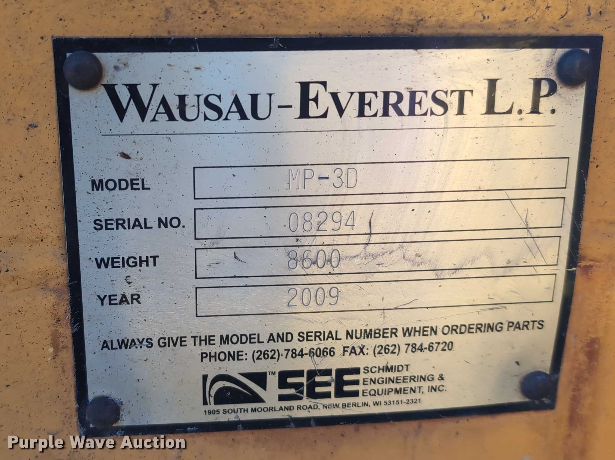 Purple Wave is selling a used Wheel Loader Attach. in Wisconsin. This item is a 2009 Wausau MP-3D snow blower with the following: Hours: Unknown, Serial: 08294, Width: 114"