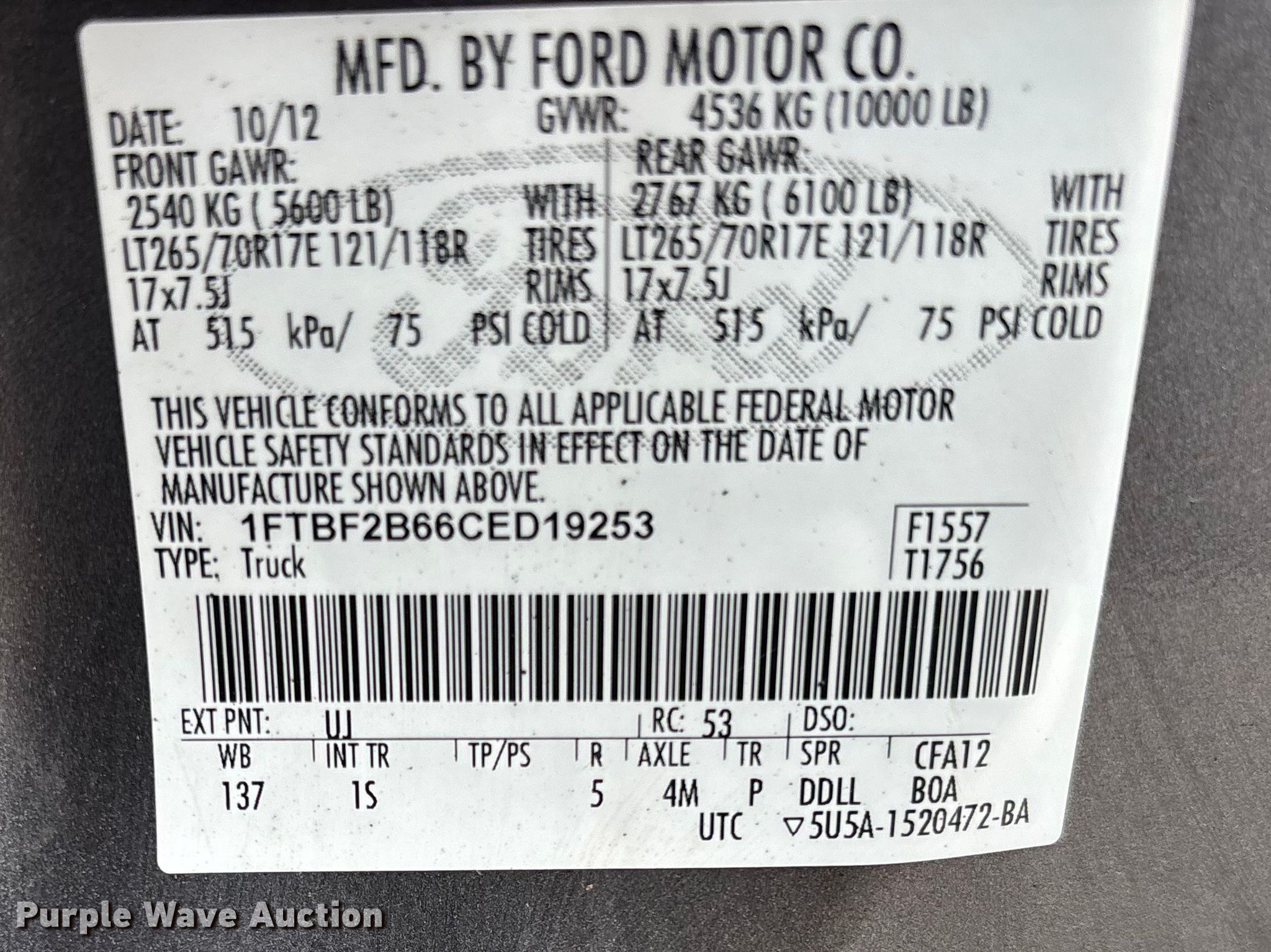 - VIN: 1FTBF2B66CED19253