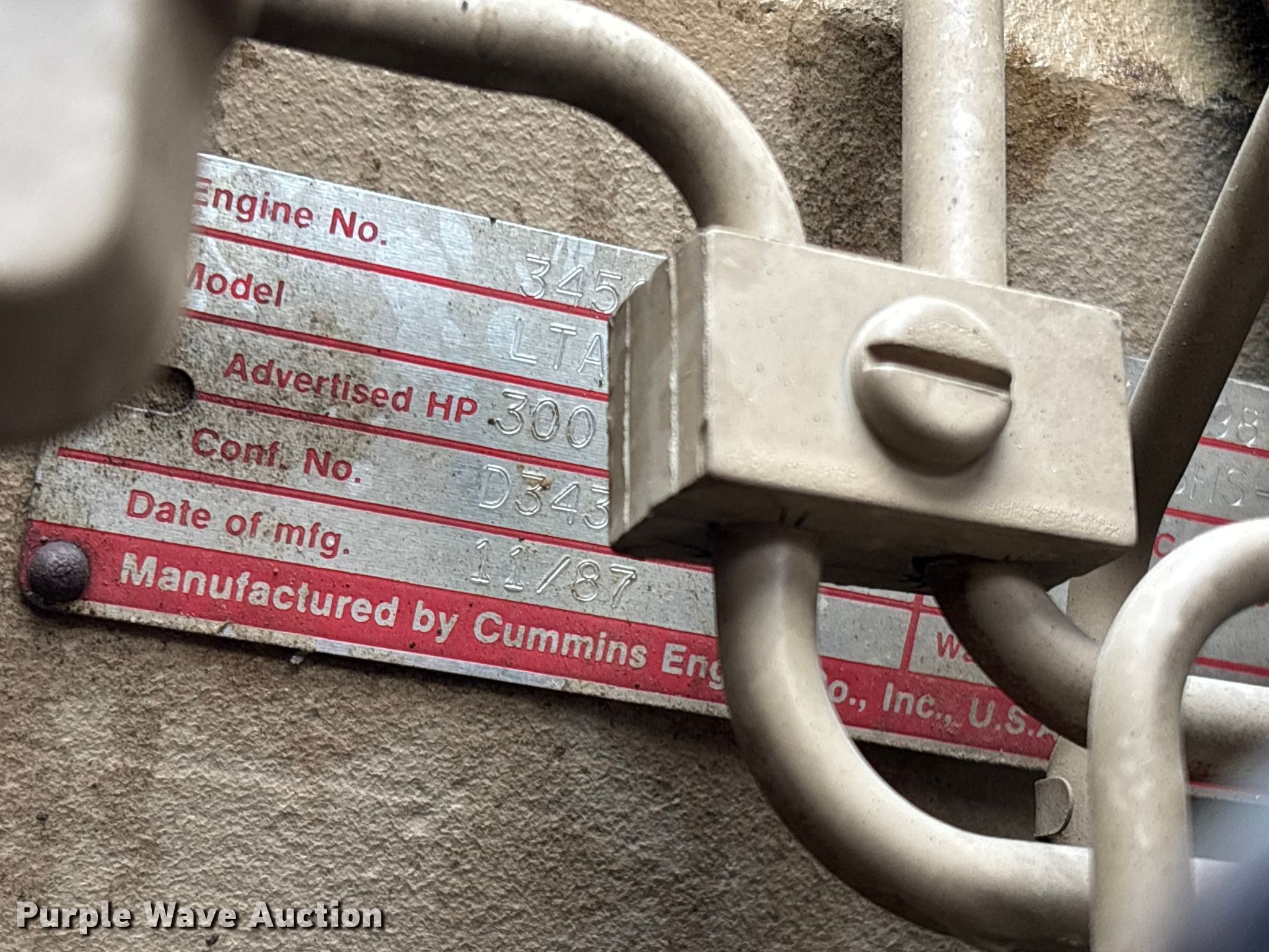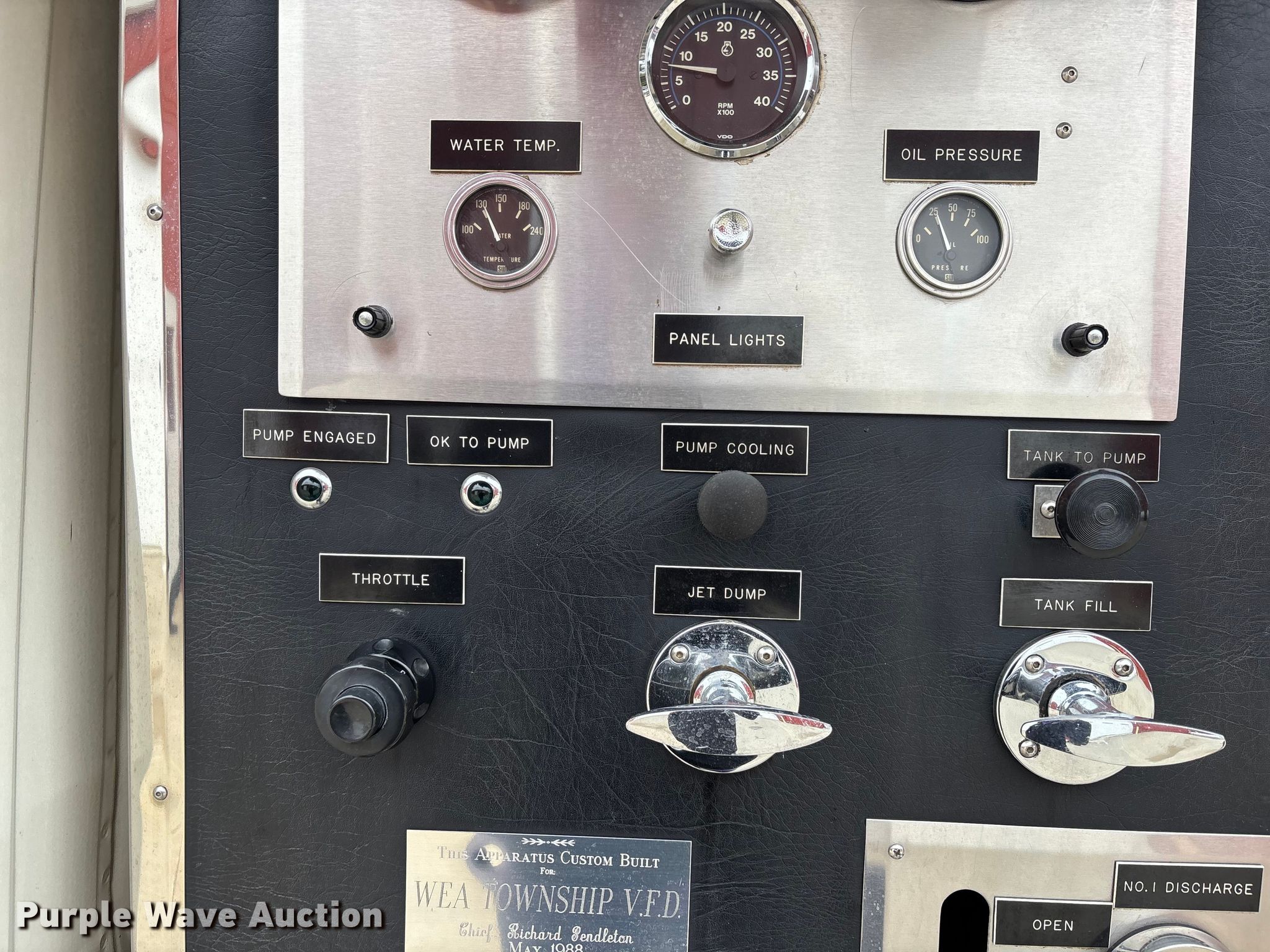 1988 Ford L9000 tanker fire truck. Miles: 19,126 on odometer, Hours: 62 on meter, VIN: 1FDYY90LXJVA06561. Engine Cummins LTA10, Cylinders: 6, Fuel type: Diesel, HP: 300. Transmission Automatic. Chassis Four wheel drive, Axles: Tandem, Suspension: Spring, Brakes: Air, GVWR: 50,000 lbs. Features Fire truck body Tank Capacity: 3,000 gallons, Pump 500 gpm, PA/ siren controls. Tires Size: 11R22.5. Indiana title. Seller is a government entity who will be assigning and distributing the title. Please contact the seller for distribution questions. Title distribution may be delayed up to 30 days from verification of funds. Wea Township Fire Department. Lafayette, IN 47909
