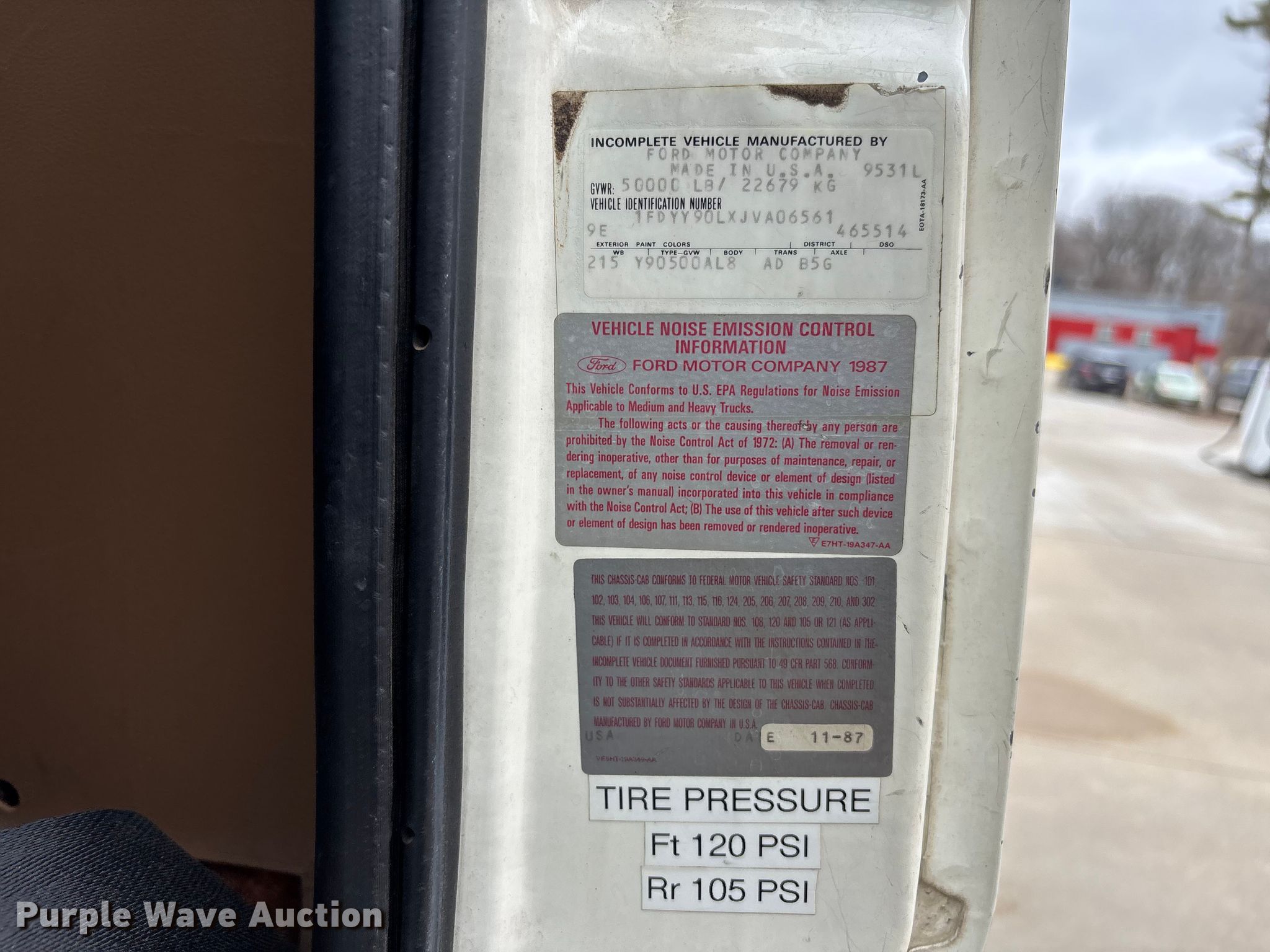 Take a look at this used 1988 Ford L9000 tanker fire truck being sold on April 14th, 2026 in the Tuesday April 14 Government Auction made by Ford. Take a look at all of the item information below or take a look at similar auctions for Trucks.