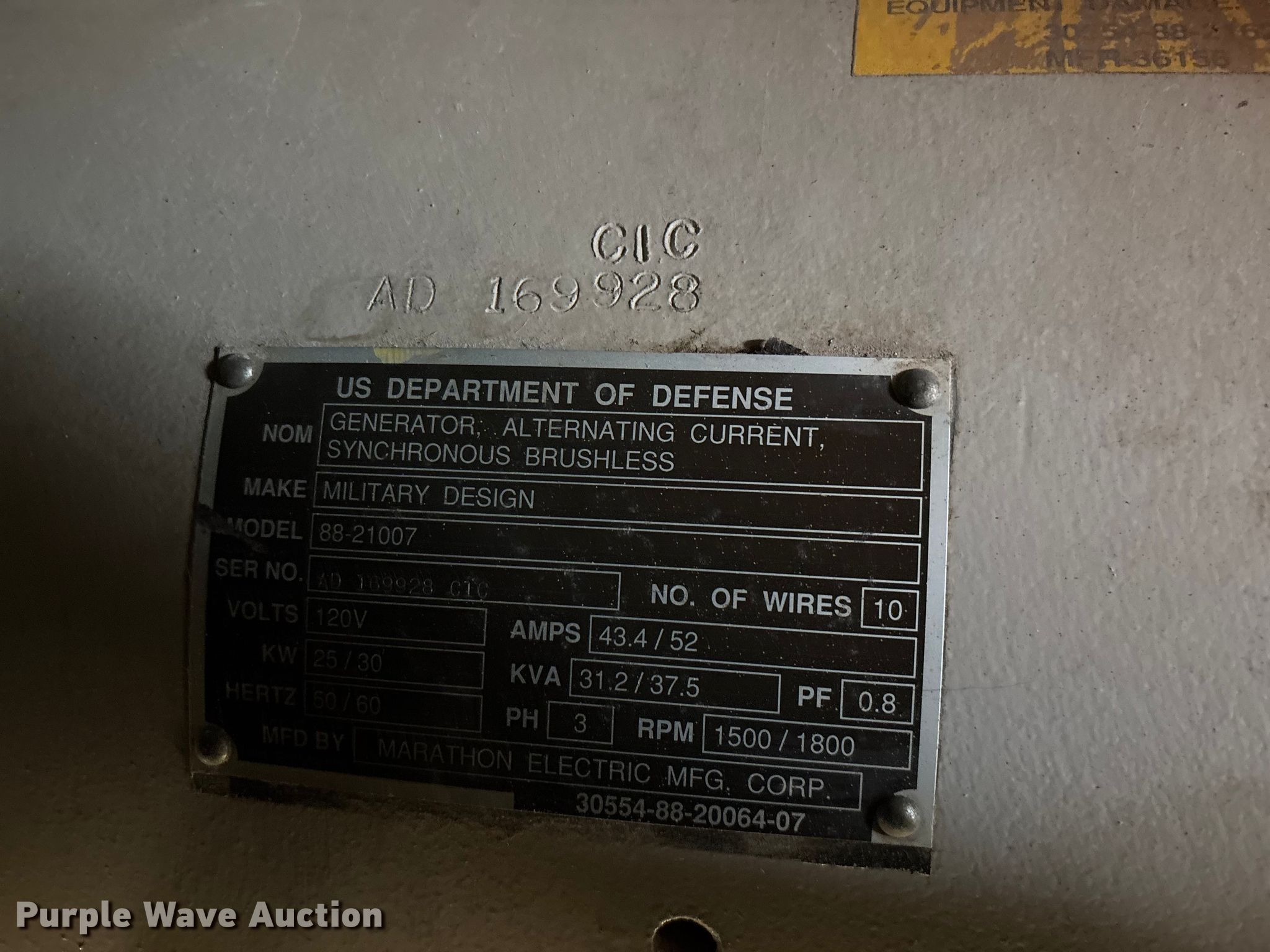 Purple Wave is selling a used Generator Set in Oklahoma. This item is a U.S. Department of Defense MEP-805A generator with the following: Hours: 180 on meter, VIN: DS85-11638, Serial: T95086112