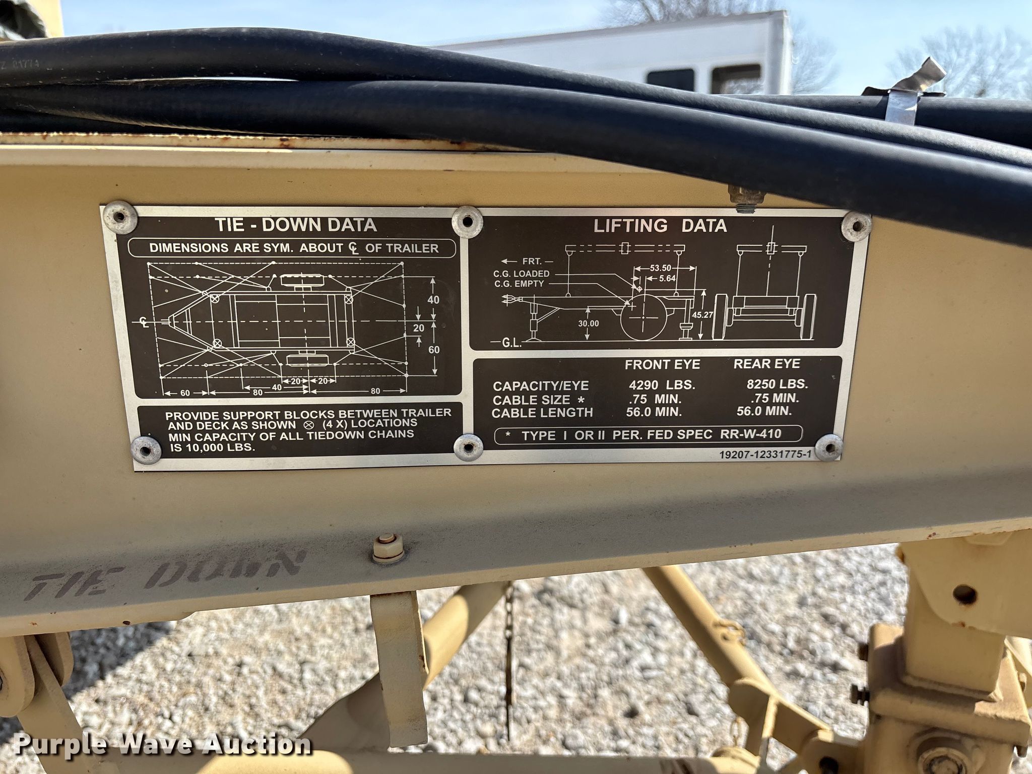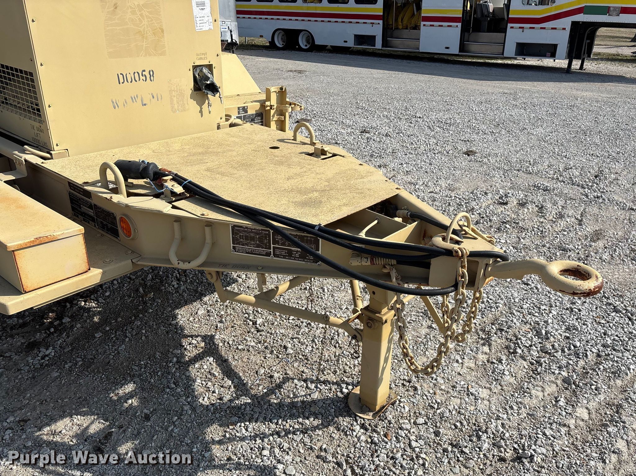US Department of Defense MEP-804A generator. Hours: 601 on meter, VIN: 2498, Serial: T04239285. Engine Isuzu, Cylinders: 4, Fuel type: Diesel. Features Generator Military Design 88-21005, Serial: FZ59158, Phase: Three, kW: 12.5/15, kVA: 15.6/18.7, Electric start, Fuel tank. Trailer Utility Tool & Body Co. Inc., 13'10" L x 96" W, Hitch: Pintle, Suspension: Spring, Brakes: Air over hydraulic, Axles: Single, Tire size: 10R22.5. Notes No batteries, Oil filter missing, Unknown operating condition. This is worksite support equipment and will not come with a title. Transfer of ownership documentation will be a bill of sale. Modoc Nation. Miami, OK 74354
