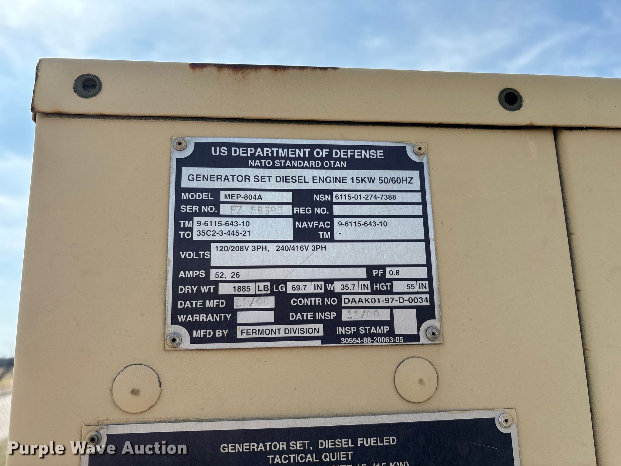 U.S Department of Defense MEP-804A generator for sale in Miami, Oklahoma. Item EN5998 will sell on April 14th, 2026.