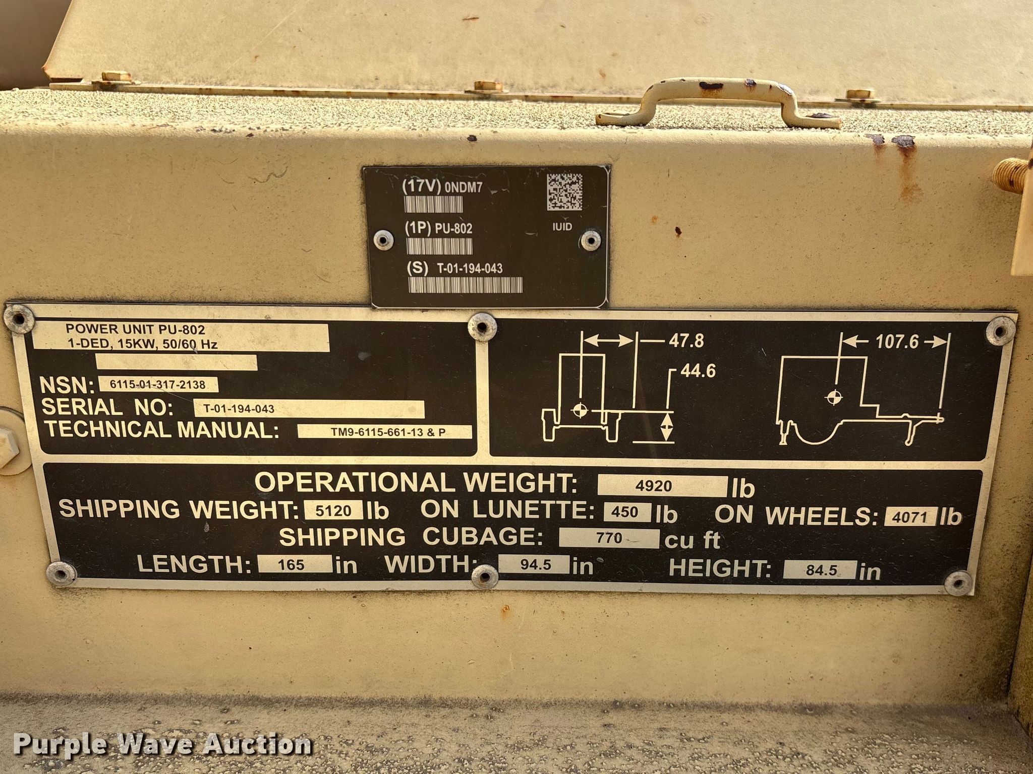 Purple Wave is selling a used Generator Set in Oklahoma. This item is a U.S Department of Defense MEP-804A generator with the following: Hours: 2,238 on meter, VIN: 1291, Serial: T01194043