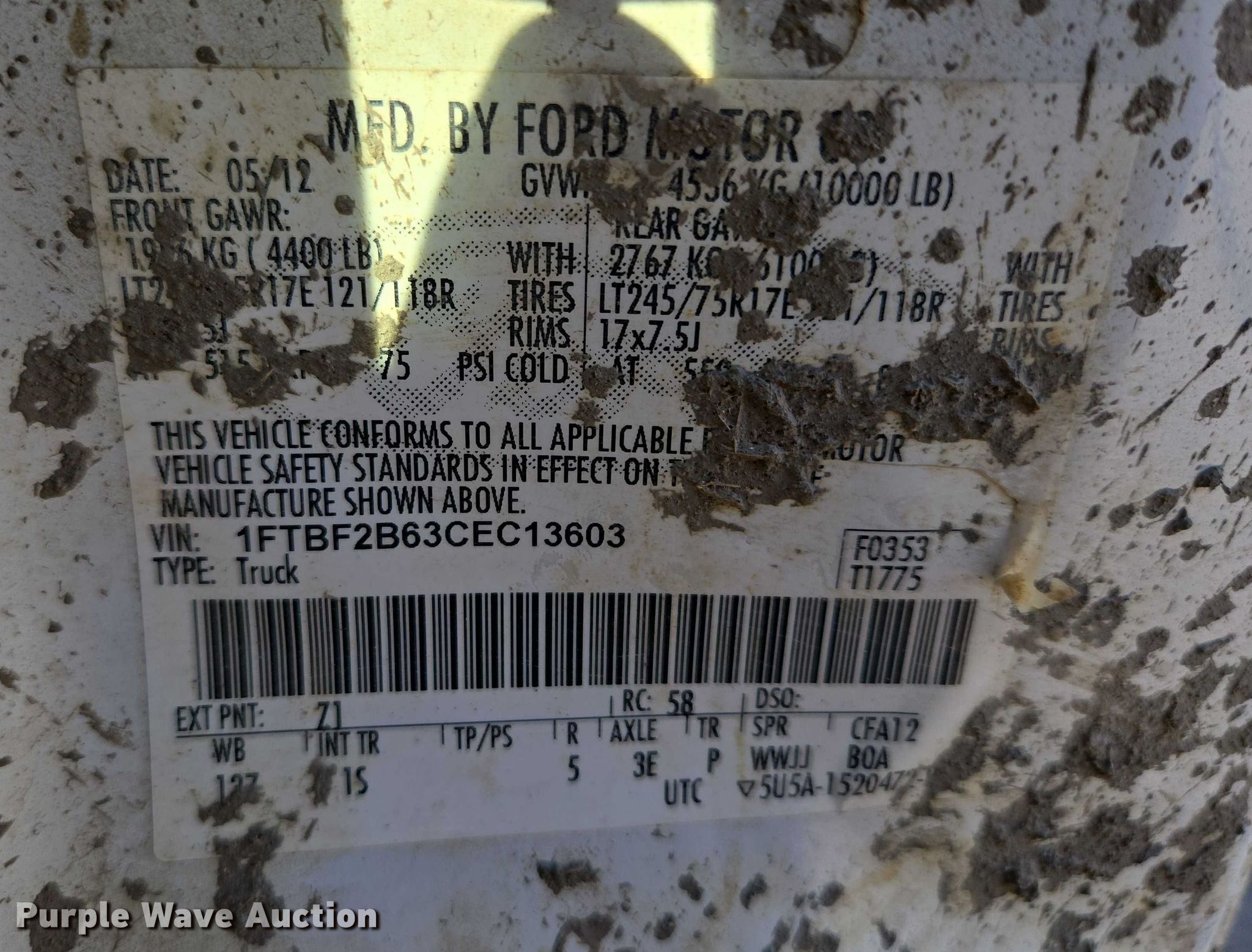 - VIN: 1FTBF2B63CEC13603