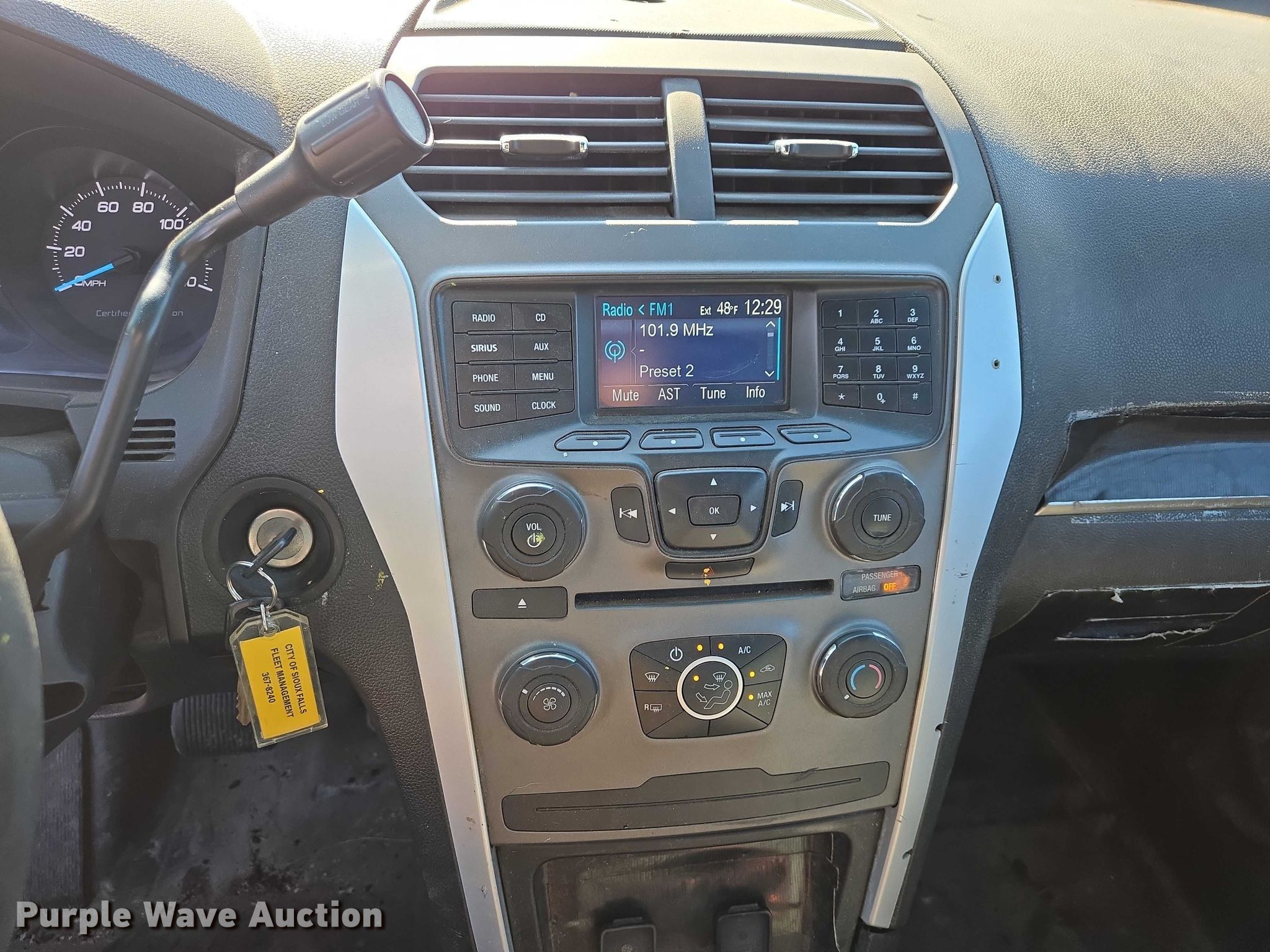 2013 Ford Explorer Police Interceptor SUV. Miles: 129,177 on odometer, Hours: 17,564 on meter, VIN: 1FM5K8ARXDGC63679, Unit #: 51-1. Engine Displacement: 3.7L, Cylinders: 6, Fuel type: Gas. Transmission Automatic, All wheel drive. Interior AC, Heat, Seat: Power driver, Power windows, Power locks, Cruise control. Tires Size: 245/55R18. Notes Windshield chipped or cracked, Hail damage. South Dakota title. Title distribution may be delayed up to 14 days from verification of funds. City of Sioux Falls-Fleet. Sioux Falls, SD 57104