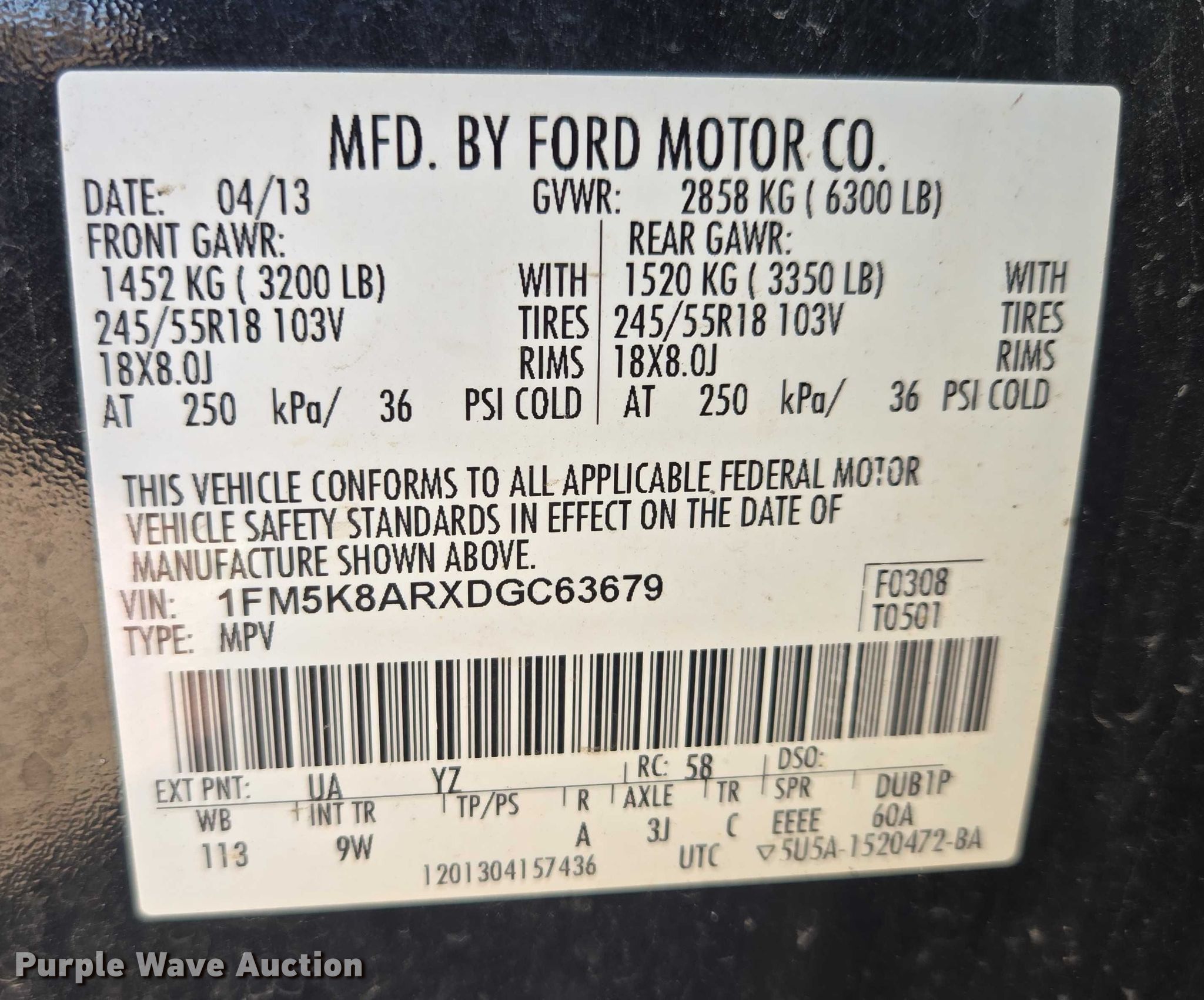 - VIN: 1FM5K8ARXDGC63679