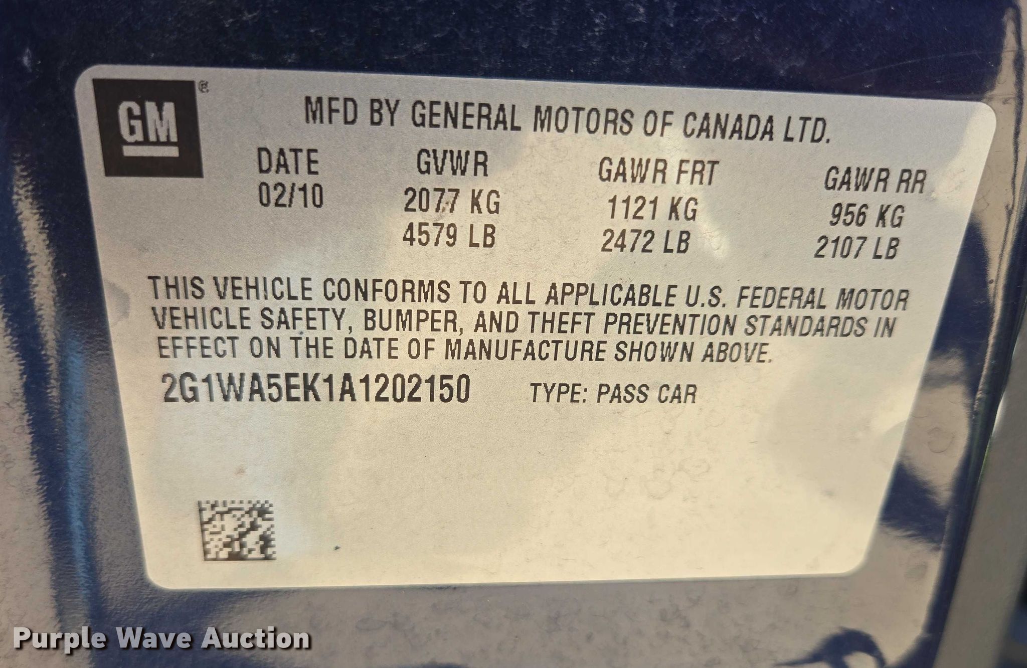 Purple Wave is selling a used Passenger Vehicle in South Dakota. This item is a 2010 Chevrolet Impala with the following: Miles: 103,478 on odometer, VIN: 2G1WA5EK1A1202150, Unit #: 51-17