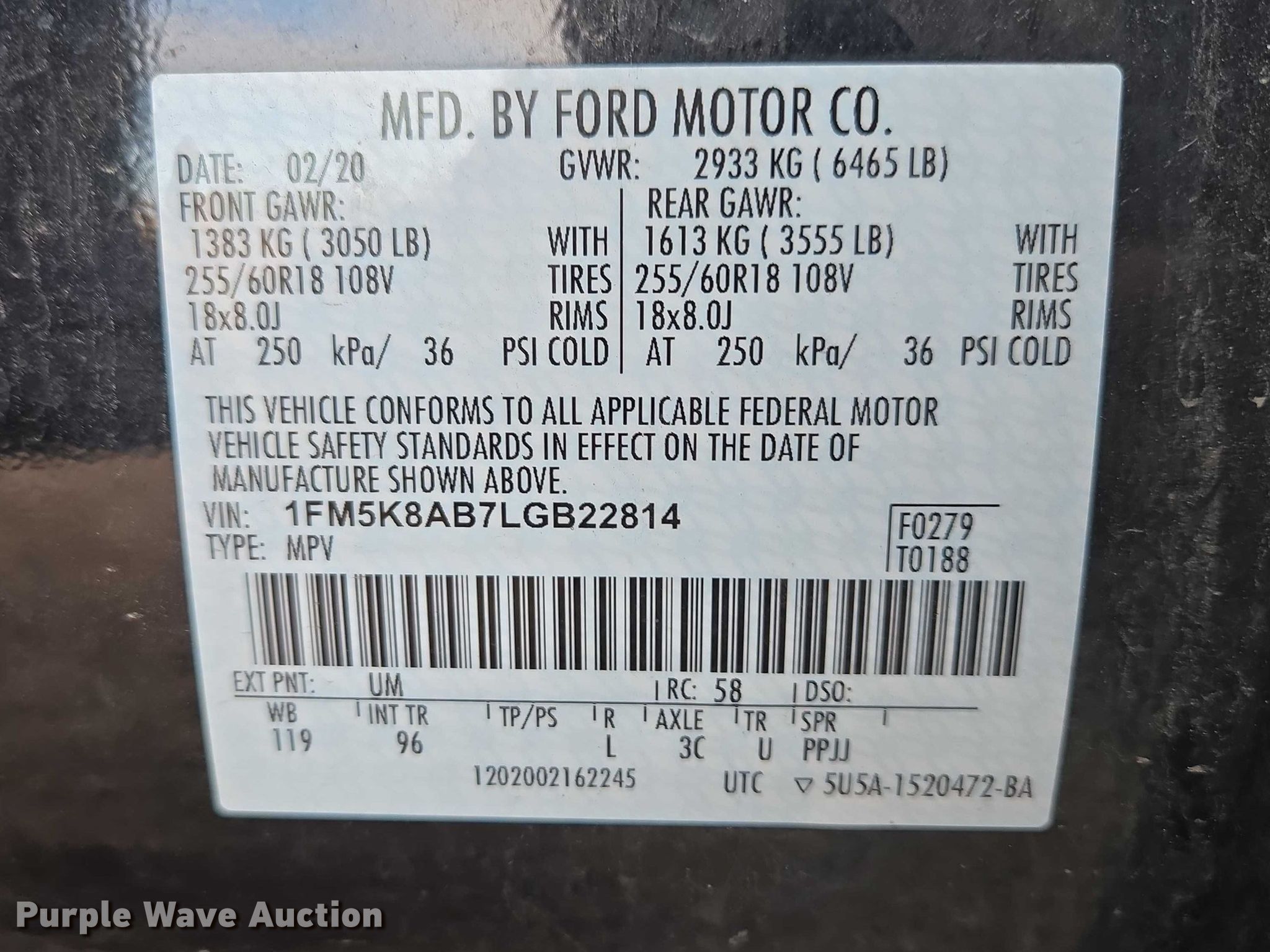 - VIN: 1FM5K8AB7LGB22814