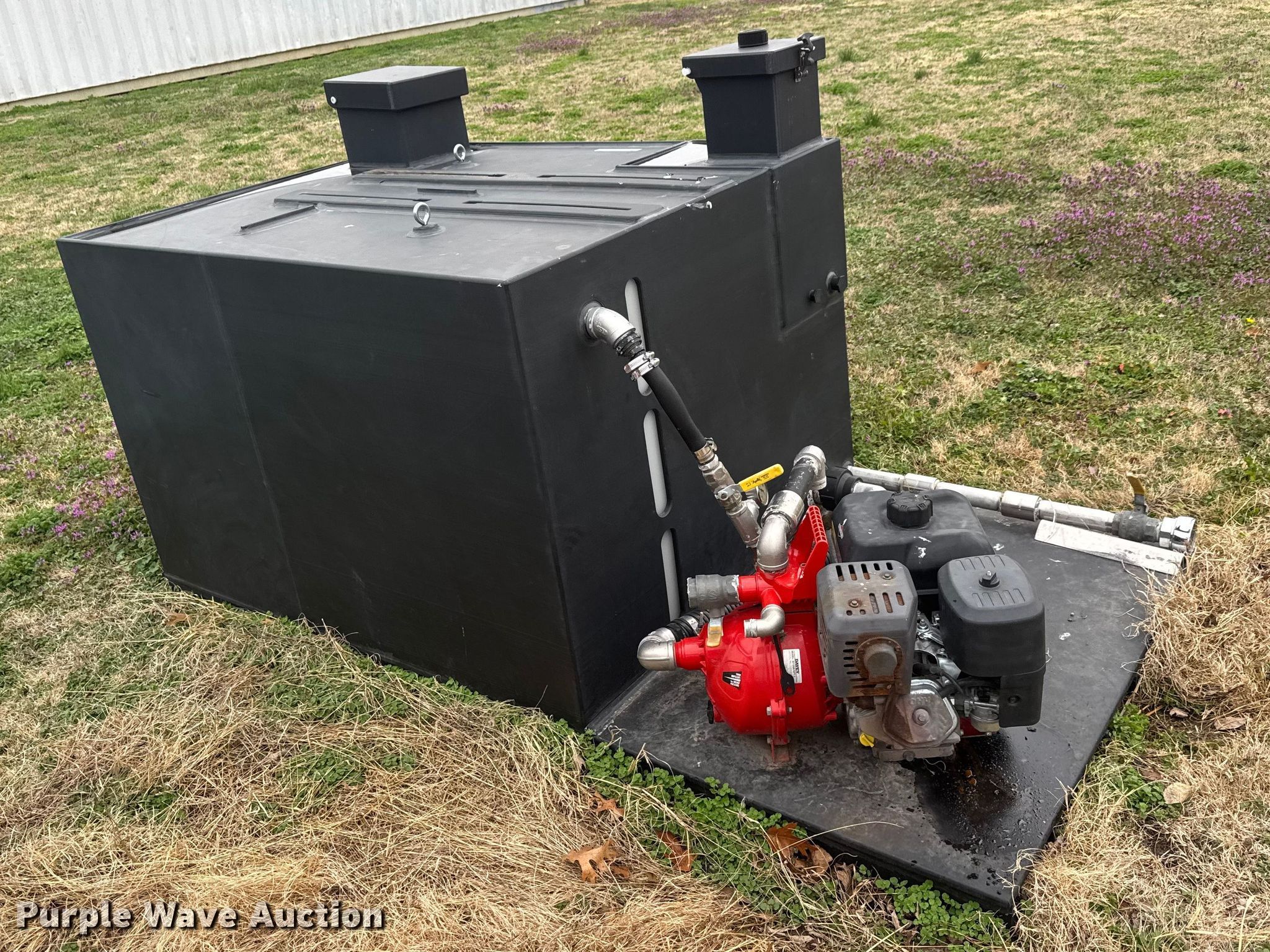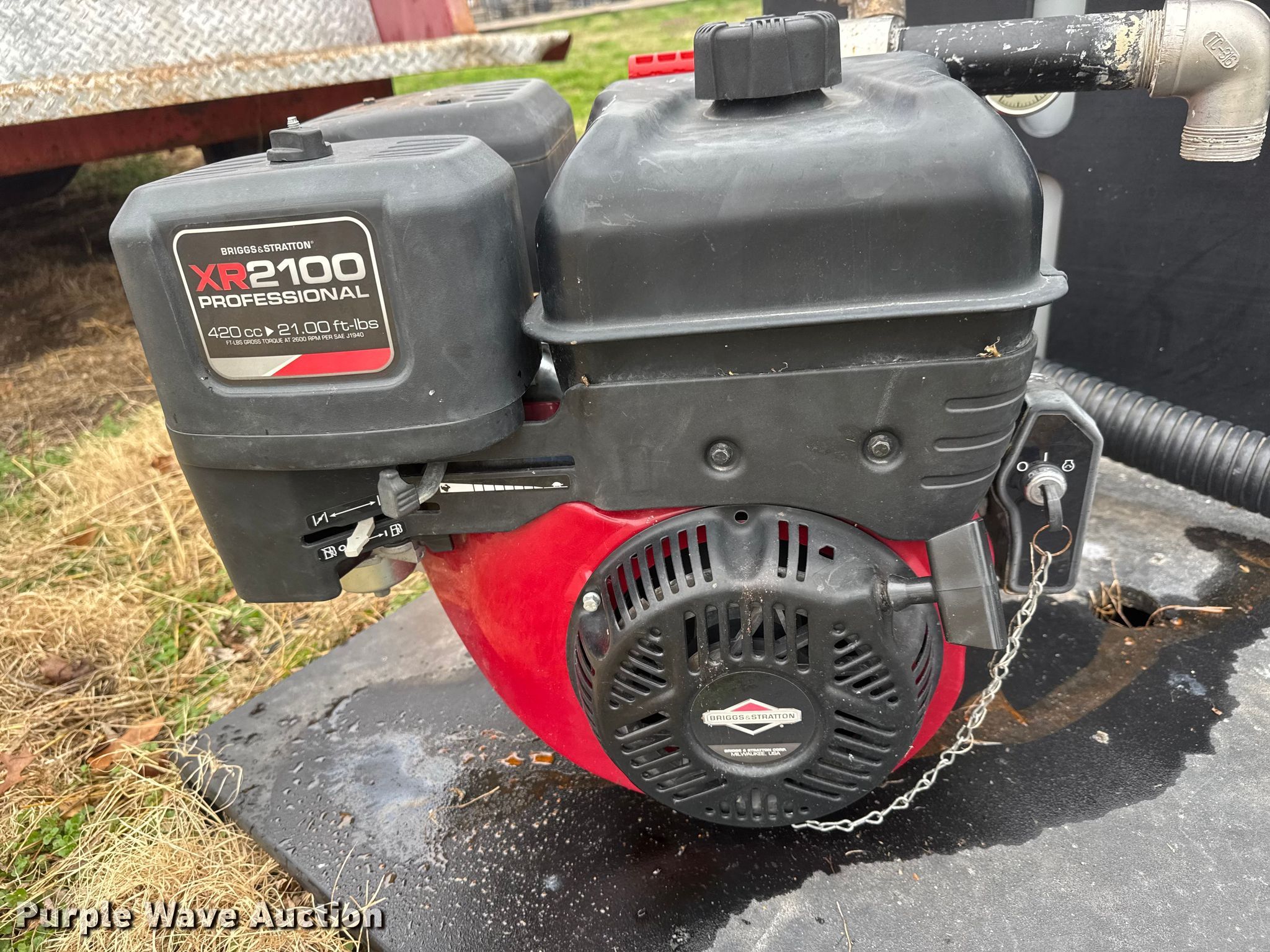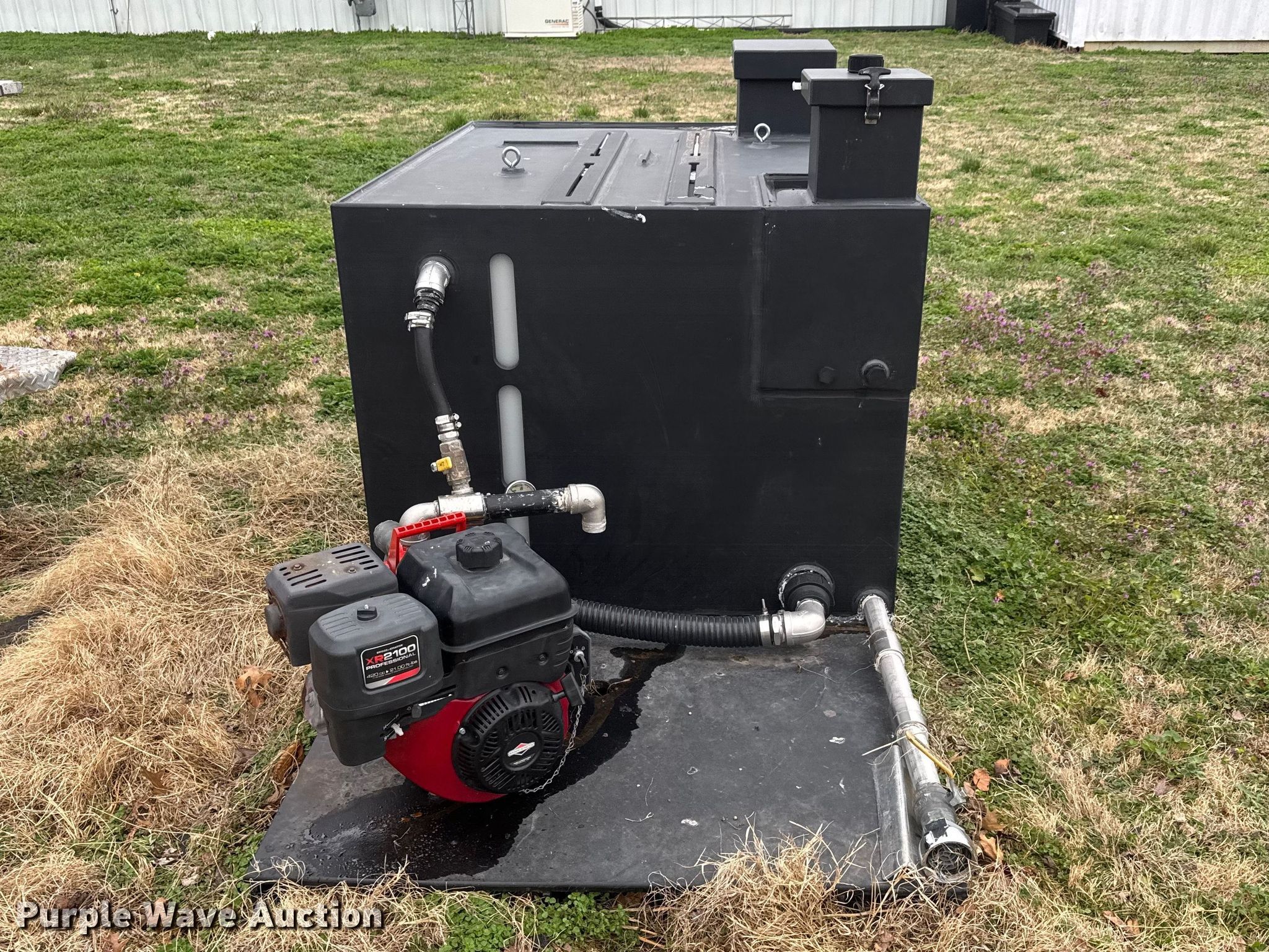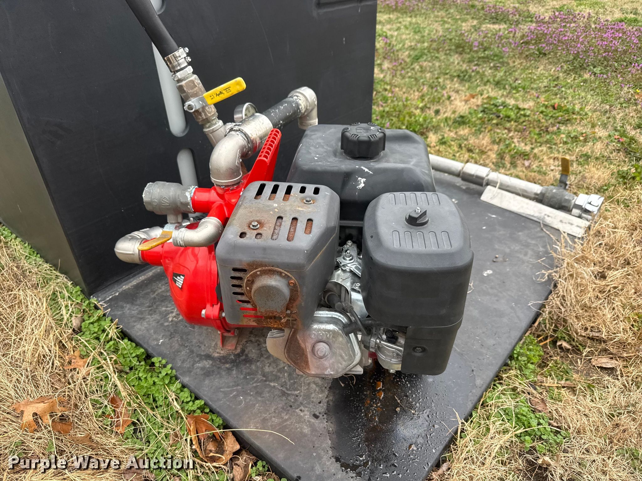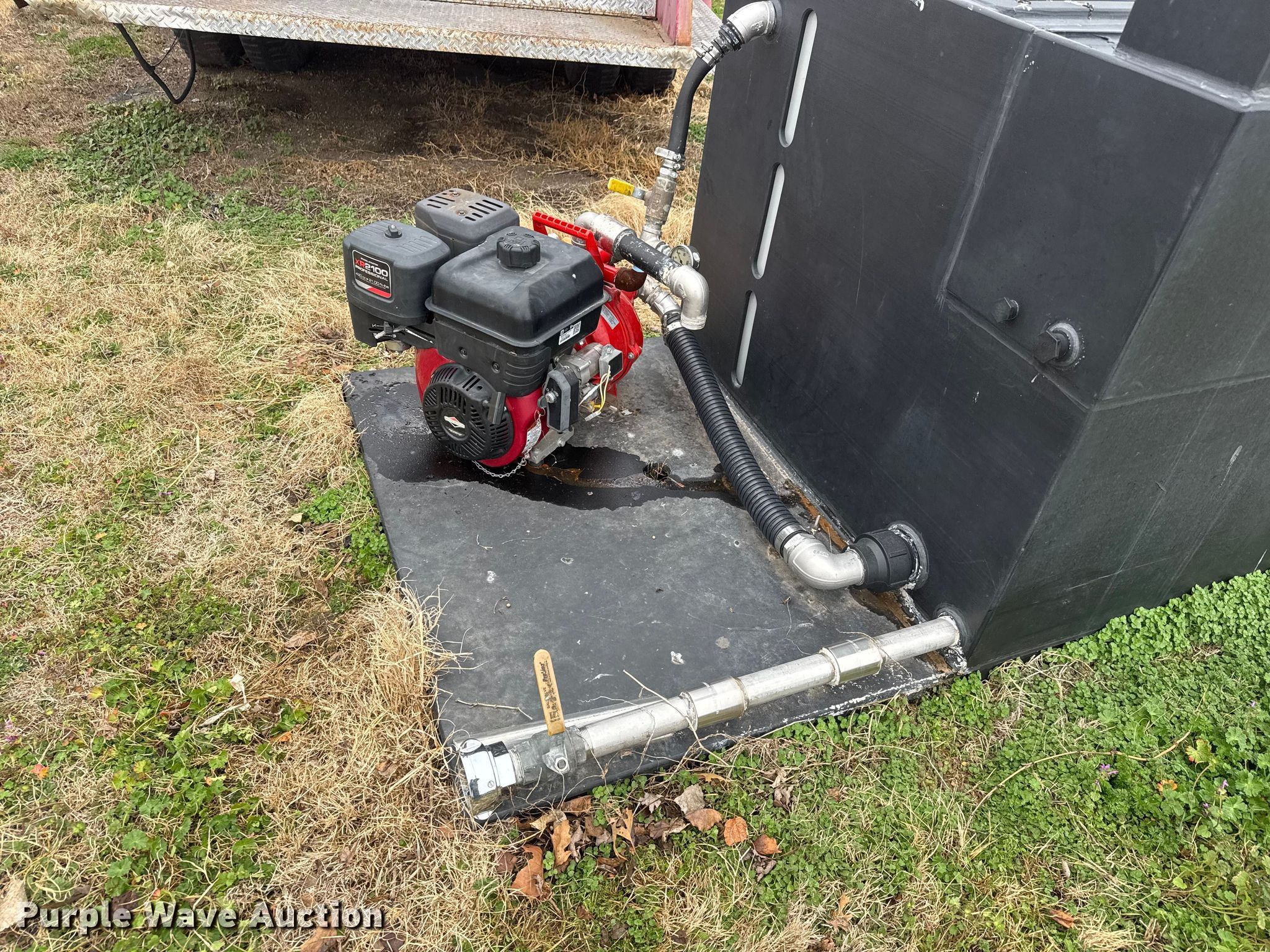 Purple Wave is selling a used Truck Part and Attach. in Kansas. This item is a Brush fire skid unit with the following: Davey 5213BE/NPT-1 pump, Serial: 14324213117, Poly tank, Capacity: 400 gallon, Briggs & Stratton XR2100 engine, Serial: 1704211600164, Cylinders: Single, Displacement: 420 cc, Fuel type: Gas