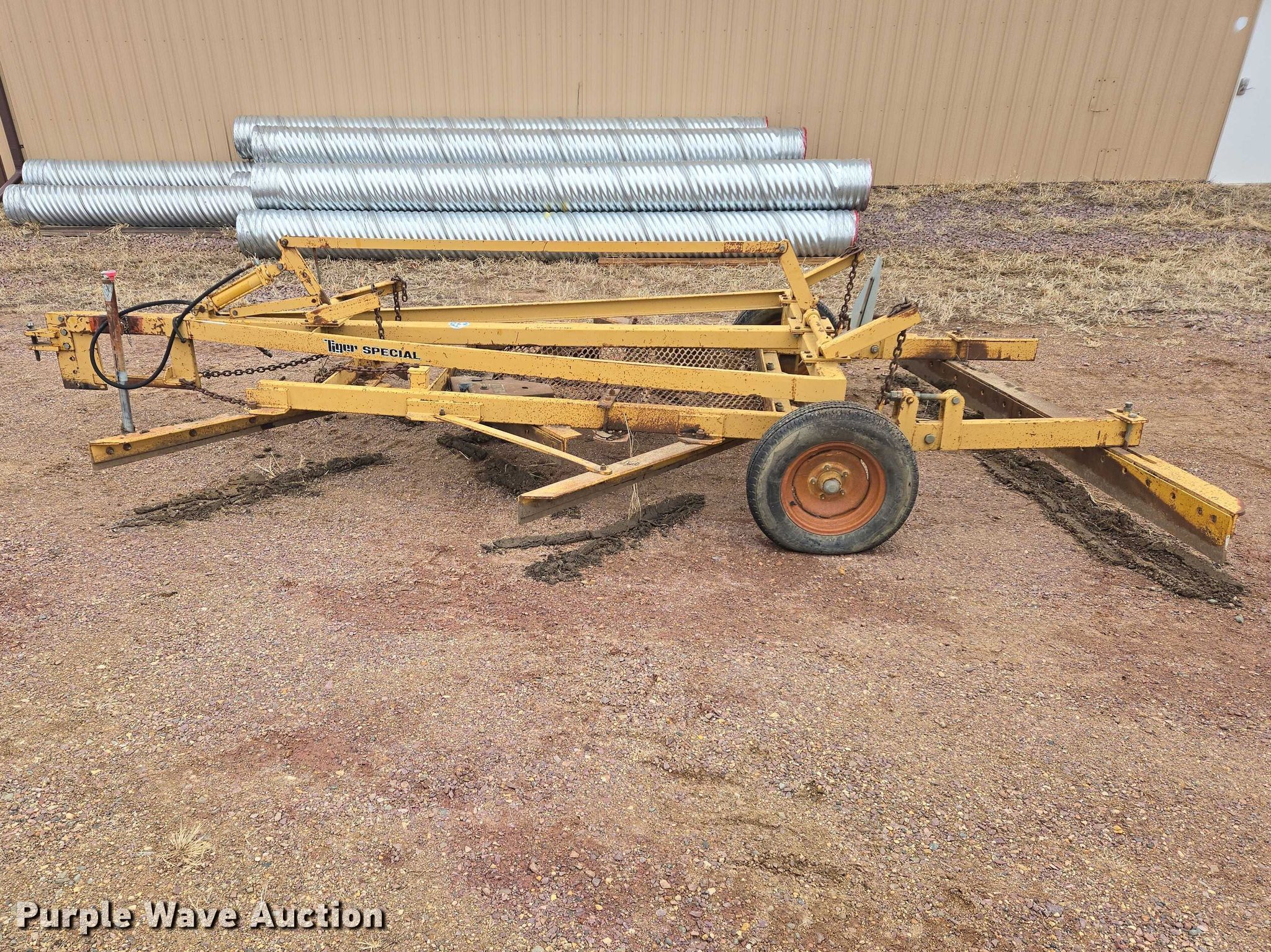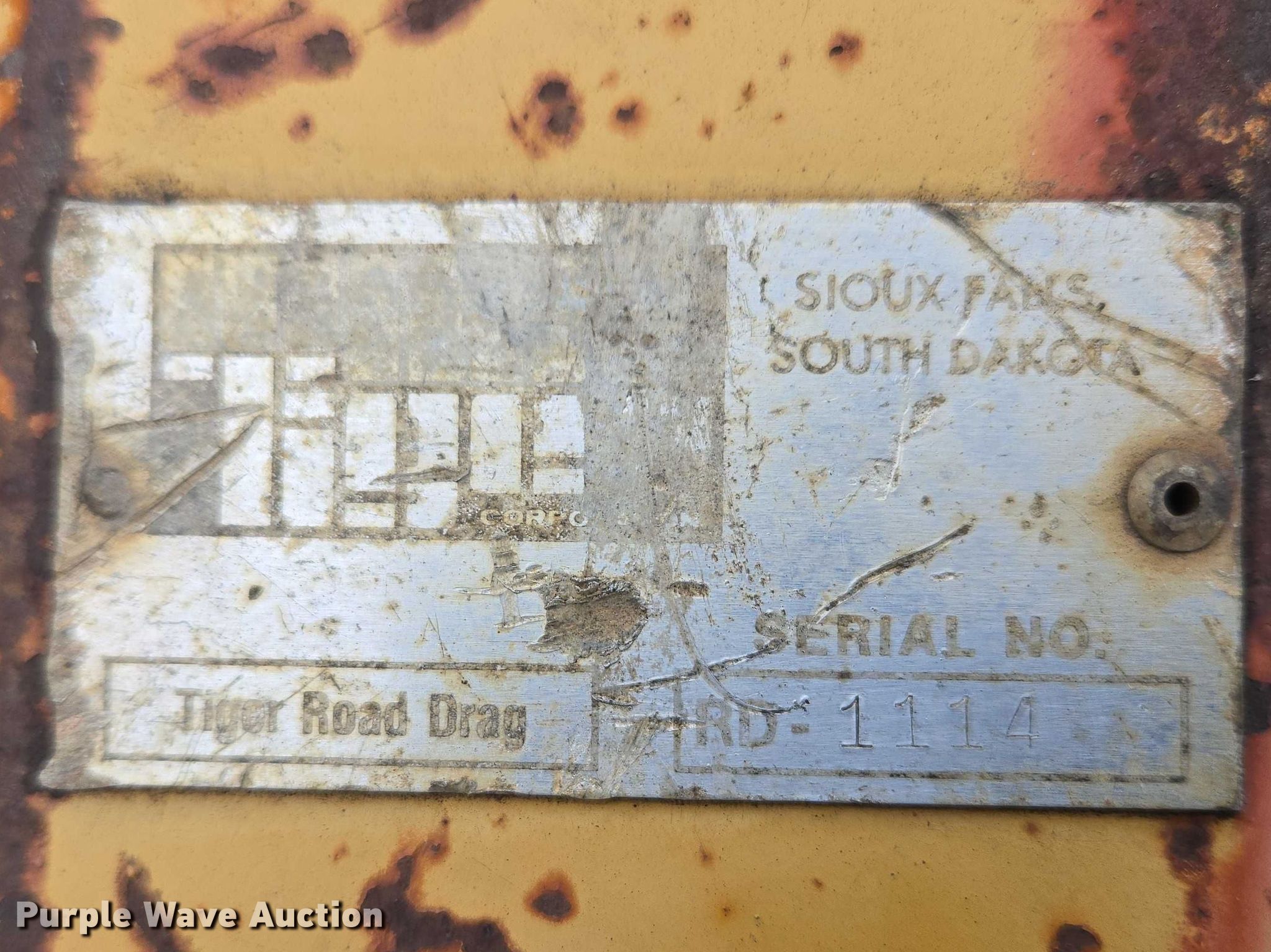 Purple Wave is selling a used Pull Type Scraper in South Dakota. This item is a Tiger Road Drag land leveler with the following: Serial: RD1114