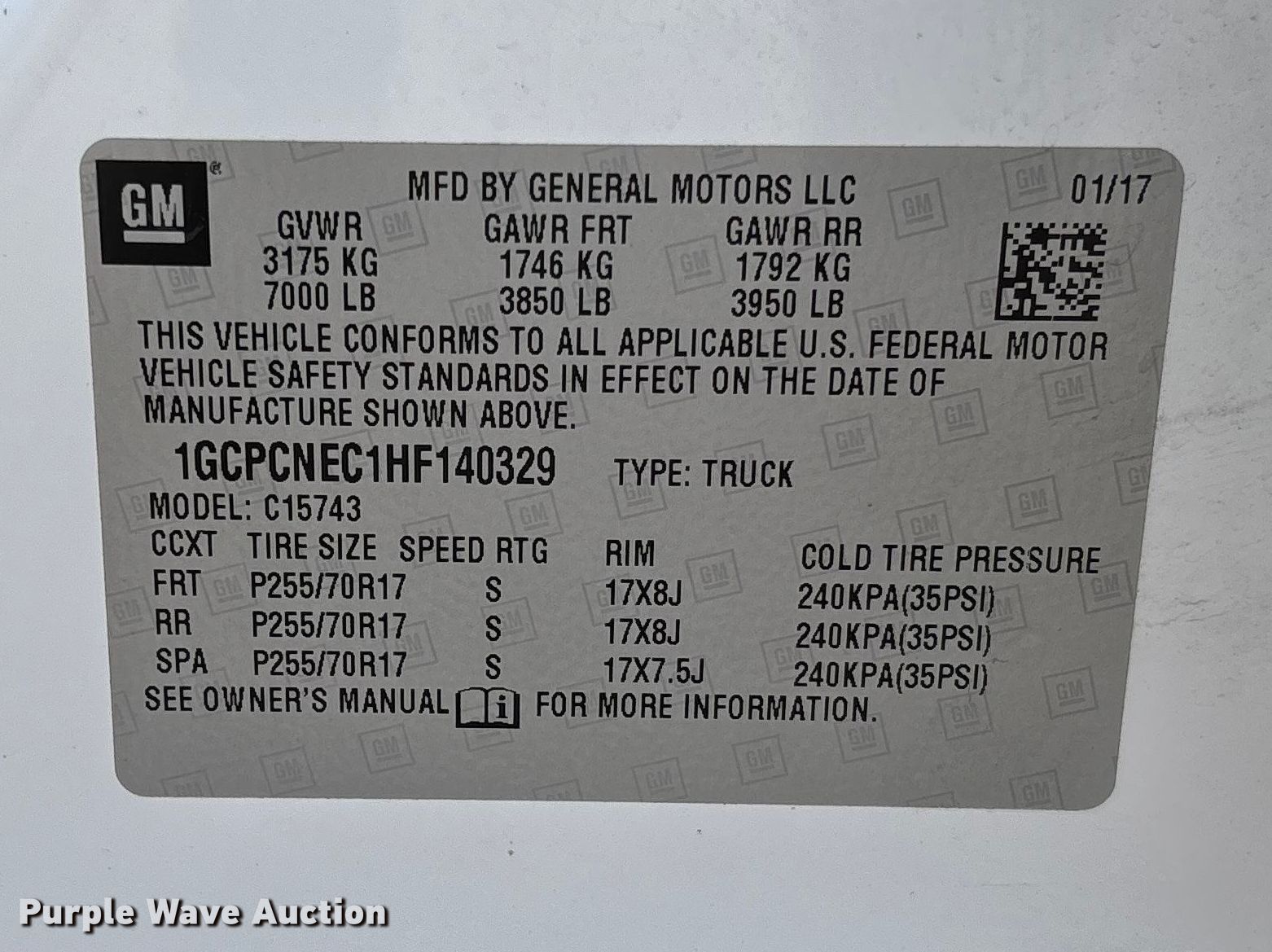 - VIN: 1GCPCNEC1HF140329