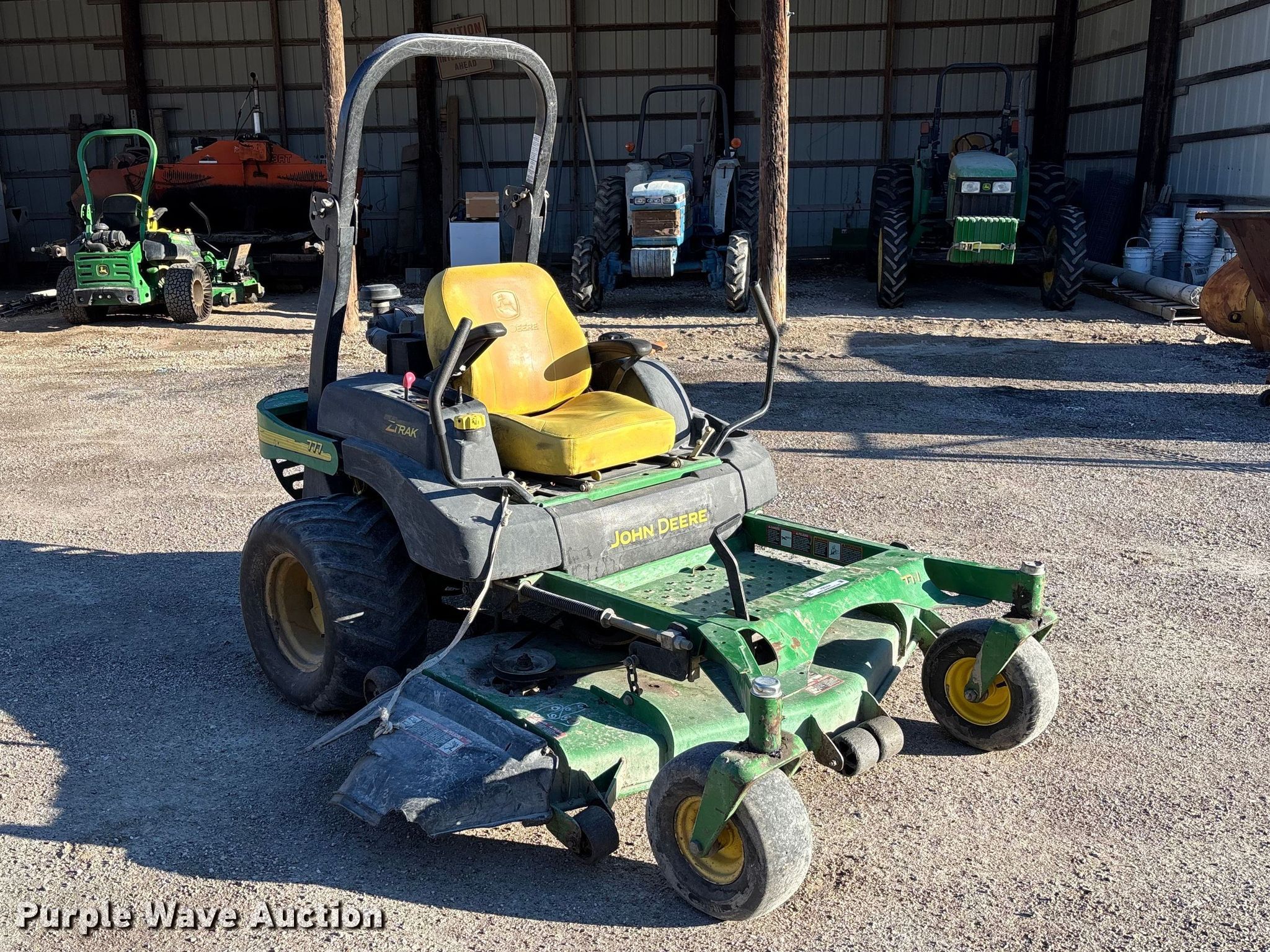 Purple Wave is selling a used Commercial Turf Mower in Missouri. This item is a John Deere 777 Ztrak ZTR lawn mower with the following: Hours: 2,723 on meter, Cutting width: 60", Serial: TC0777B040710