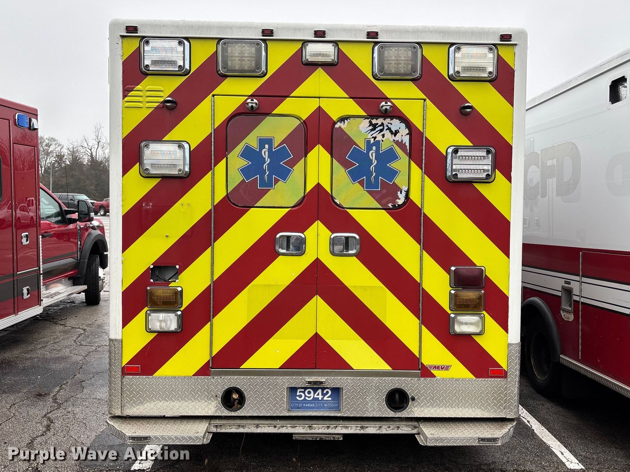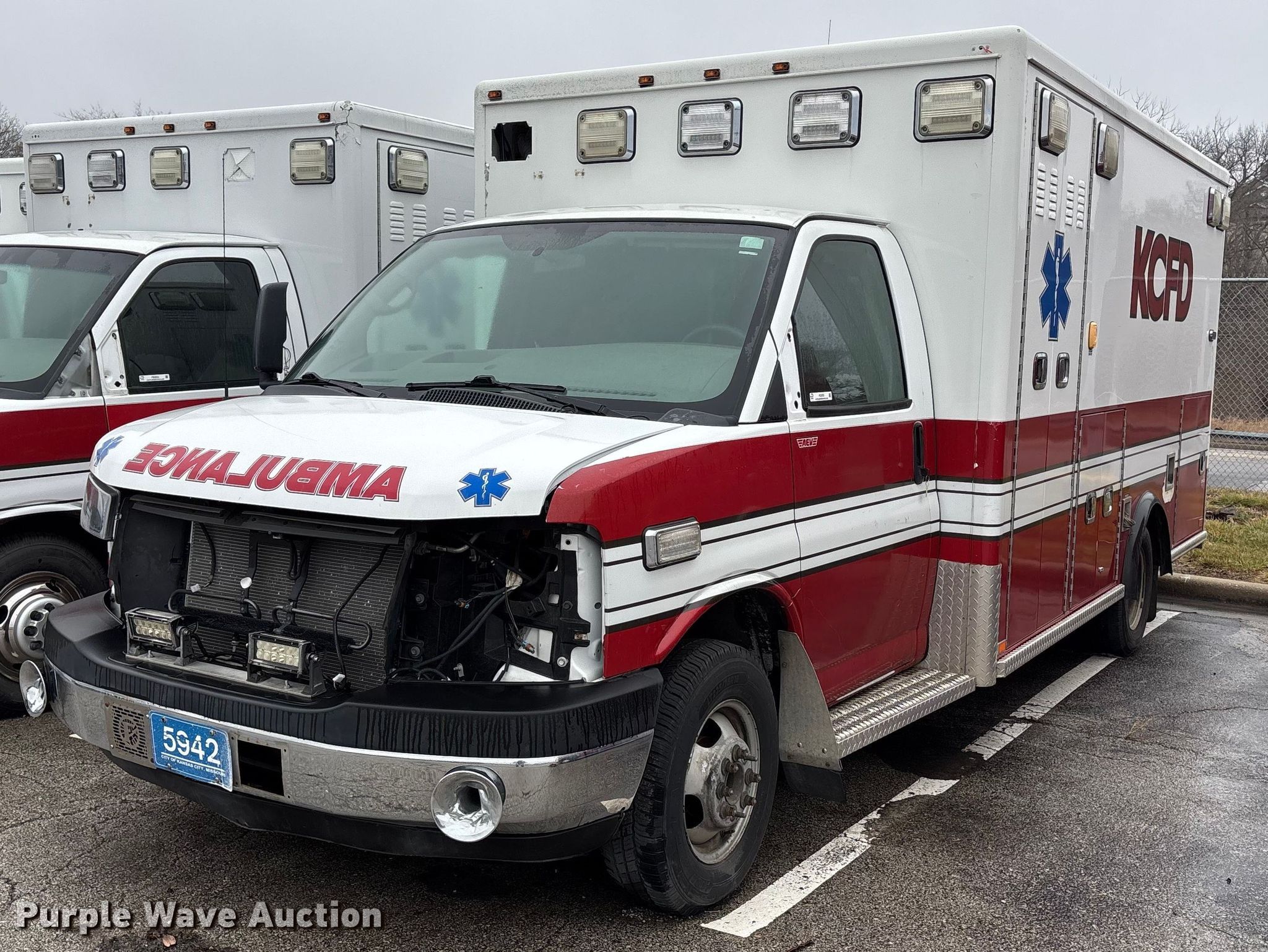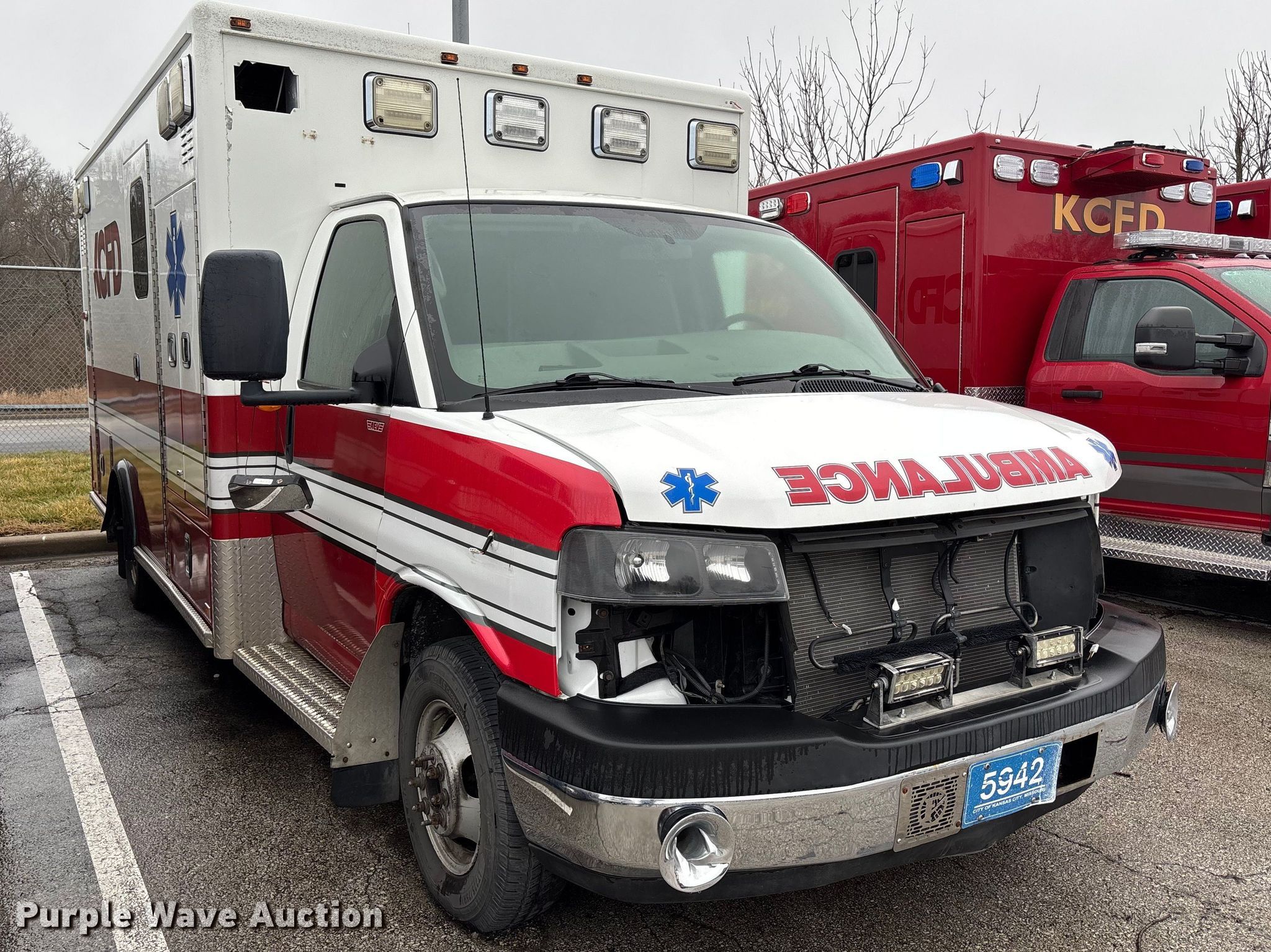 2014 Chevrolet Express G4500 ambulance. Miles: Unknown, VIN: 1GB6G5CL3E1159609. Engine Displacement: 6.6L, Cylinders: 8, Fuel type: Diesel. Transmission Automatic. Chassis Axles: Single, Suspension: Spring, Brakes: Hydraulic, GVWR: 14,200 lbs, Wheelbase: 156". Interior AC, Heat, Power windows, Power locks, Cruise control. Features Ambulance body AEV, PA/ siren controls, Oxygen hookups. Tires Size: 225/75R16. Notes Mirror missing, Non-operational unit, Unit must be towed or hauled. Missouri title. Mileage has not been verified. Exempt will be written in the odometer disclosure on the title. Title distribution may be delayed up to 30 days from verification of funds. Kansas City Fire Department. Kansas City, MO 64129