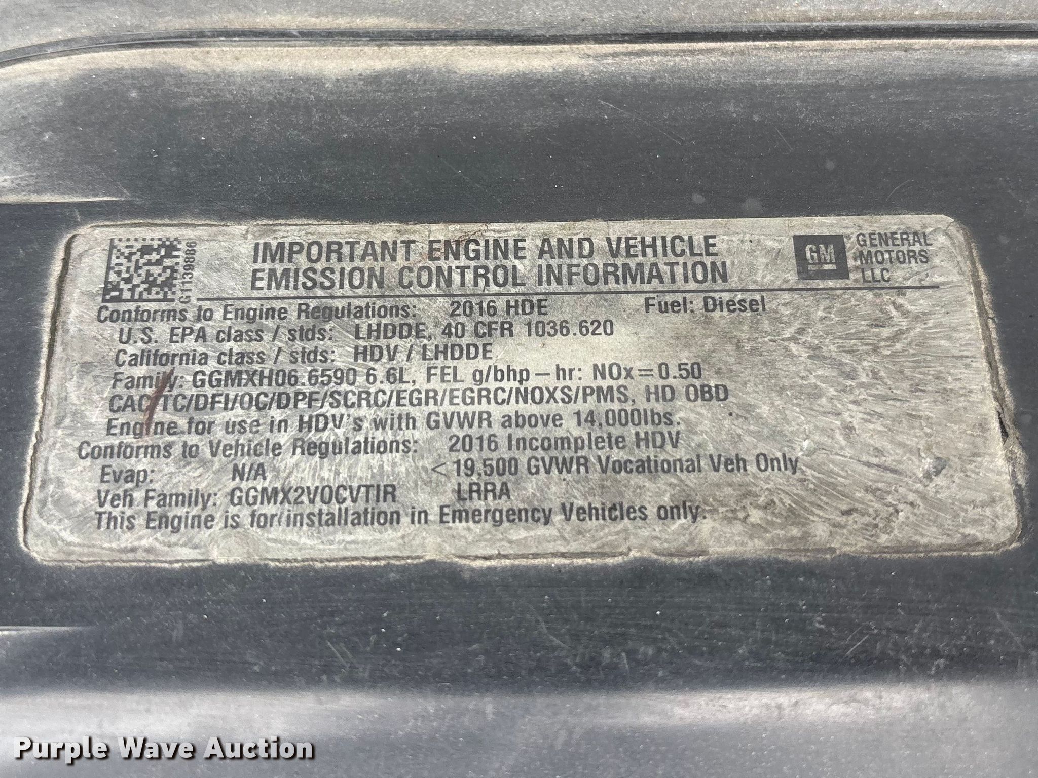 2016 Chevrolet Express G4500 ambulance. Miles: 221,590 on odometer, VIN: 1GB6GUCLXG1139886. Engine Displacement: 6.6L, Cylinders: 8, Fuel type: Diesel. Transmission Automatic. Chassis Axles: Single, Suspension: Spring, Brakes: Hydraulic, GVWR: 14,200 lbs, Wheelbase: 156". Interior AC, Heat, Heated mirrors, Power windows, Power locks, Cruise control. Features Ambulance body AEV, PA/ siren controls, Oxygen hookups. Tires Size: 225/75R16. Notes Jump start required during on-site data collection, Rear end issues, Non-operational unit, Unit must be towed or hauled. Missouri title. Title distribution may be delayed up to 30 days from verification of funds. Kansas City Fire Department. Kansas City, MO 64129