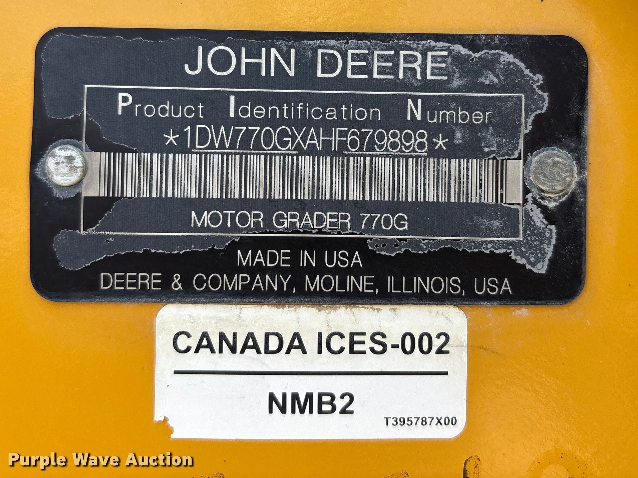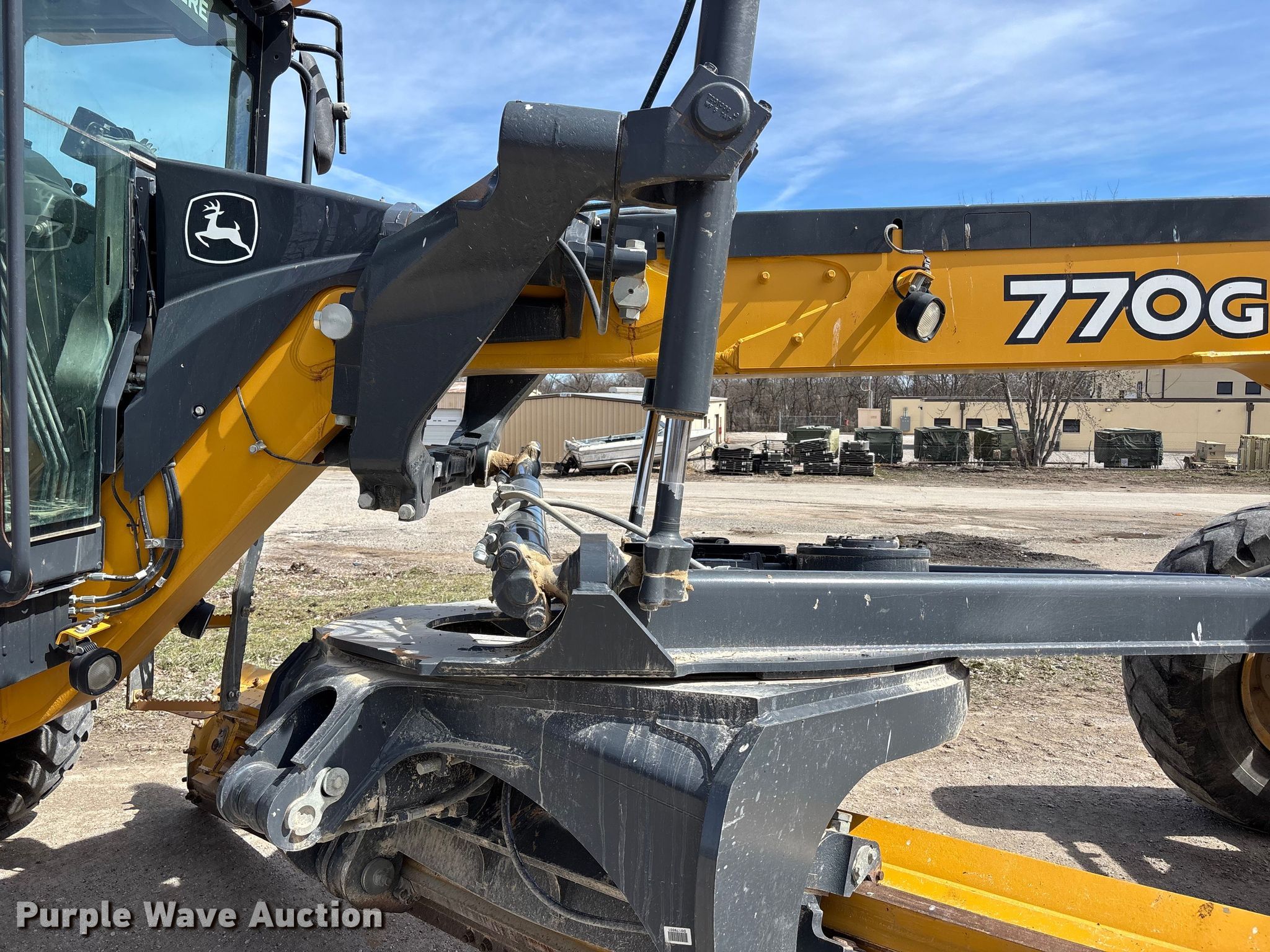 Purple Wave is selling a used Motor Grader in Missouri. This item is a 2017 John Deere 770G motor grader with the following: Hours: 7,489 on meter, Serial: 1DW770GXAHF679898