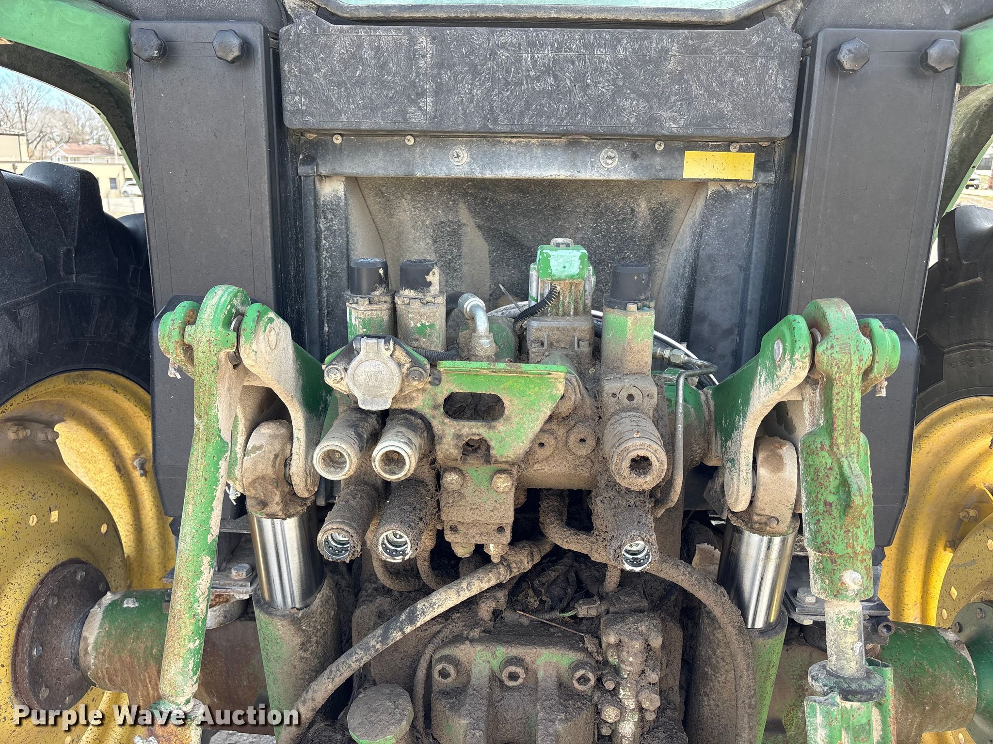 John Deere 6410 MFWD tractor. Hours: Unknown, Serial: L06410V261241. Engine John Deere, Cylinders: 4, Fuel type: Diesel. Transmission Powershift, 16F - 16R, Differential lock. Operators station AC, Heat. Features PTO: 540, Three point, Seven pin outlet, Hydraulic remote sets Rear: 3. Tires Front: 12.4R24, Rear: 460/85R34, Wheelbase: 94". Notes Jump start required during on-site data collection, Non-operational dash cluster. Johnson County. Warrensburg, MO 64093