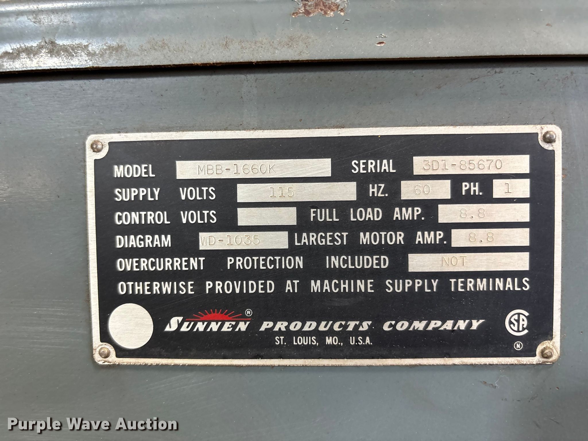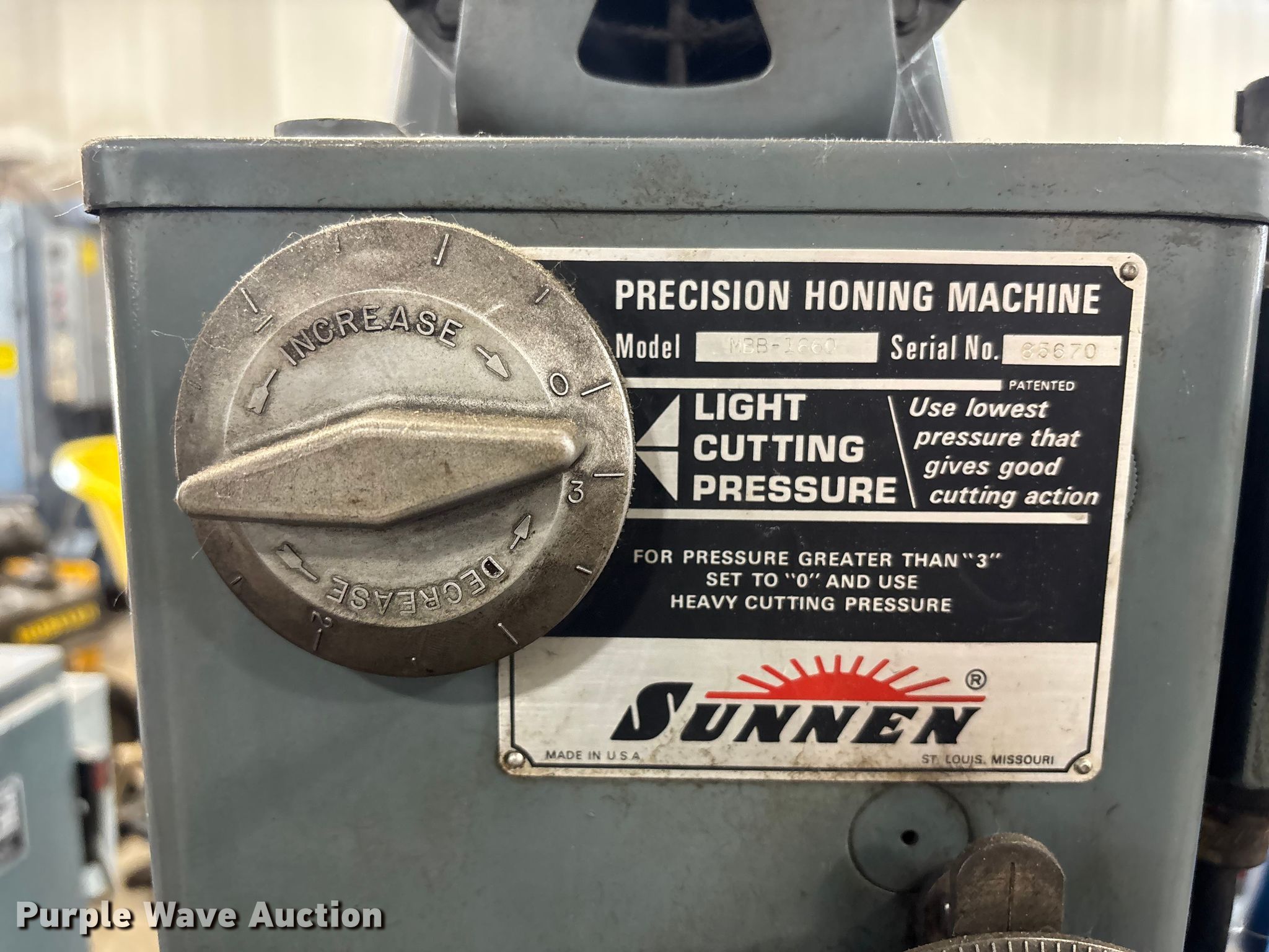 Purple Wave is selling a used Machine Shop Tools and Equip. in Missouri. This item is a Sunnen MBB-1660 precision honing machine with the following: Serial: 85670