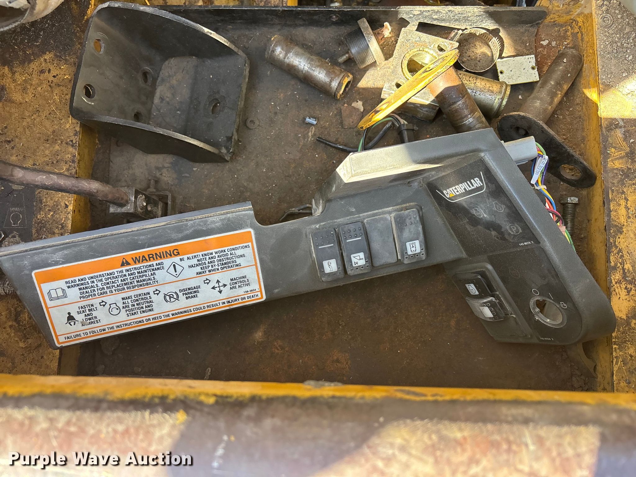 2000 Caterpillar 226 skid steer loader. Hours: Unknown, Serial: 5FZ03440. Engine No engine. Transmission No transmission. Operators station Enclosed cab, Bucket control: Hand. Features Auxiliary hydraulics. Tires Size: 10-16.5. Notes Door missing, Non-operational unit. Raytown C-2 School District. Raytown, MO 64138