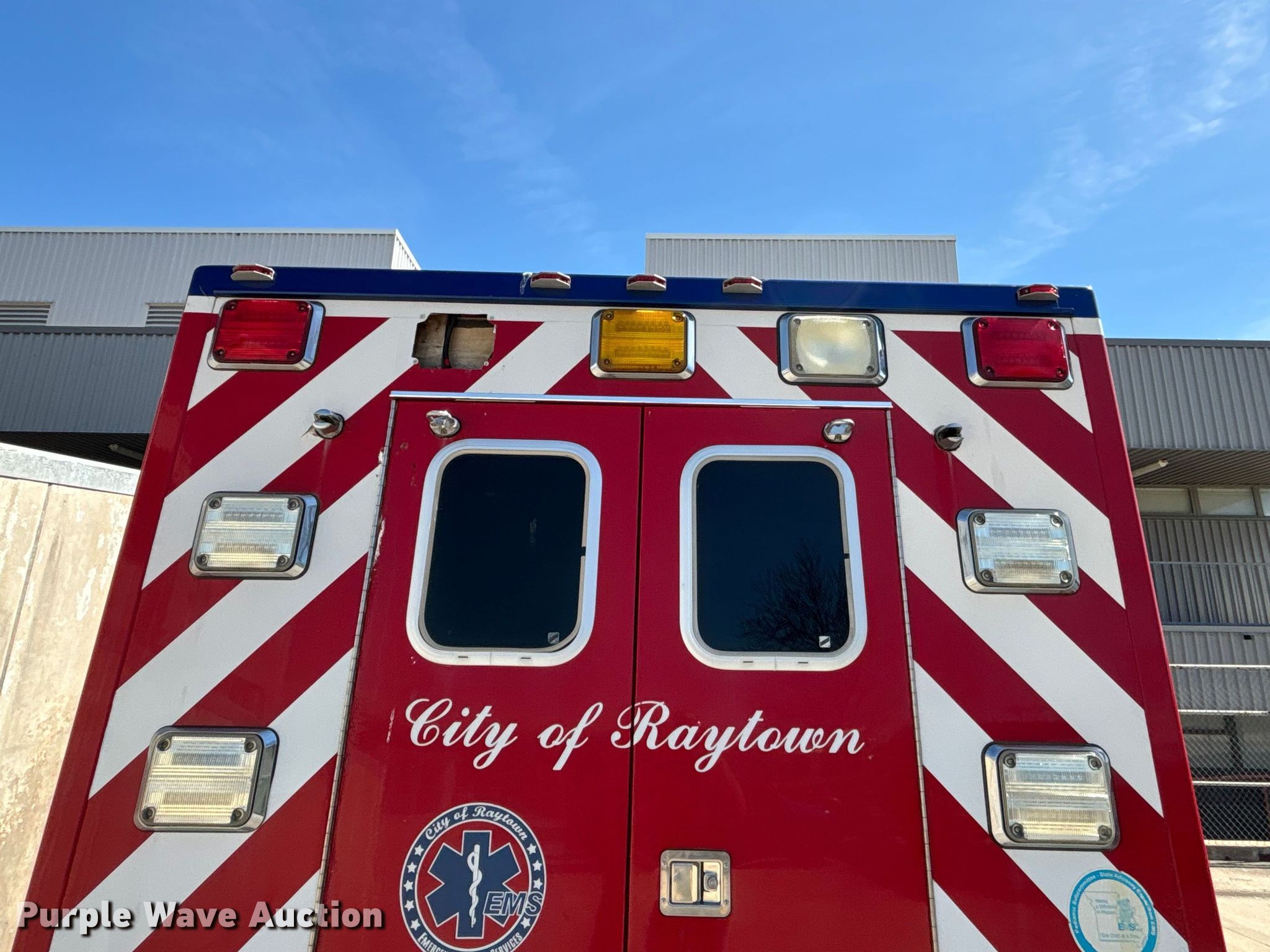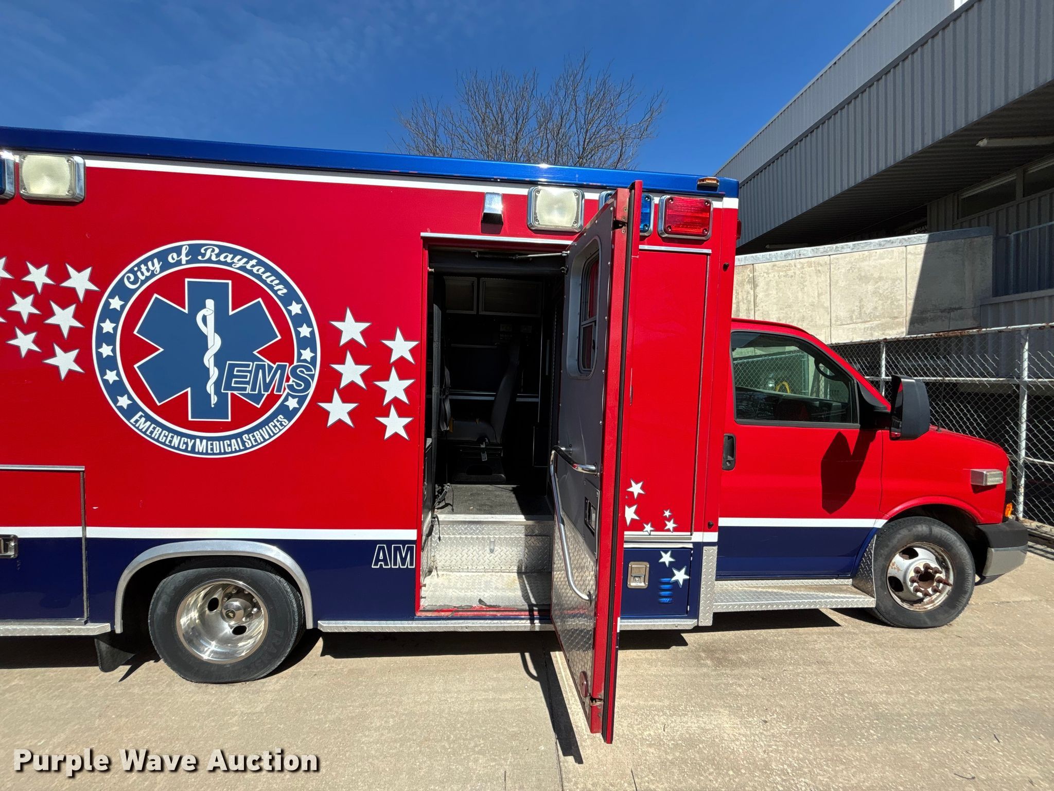 2009 GMC ambulance. Miles: Unknown, VIN: 1GDKG316591161035. Engine Displacement: 6.6L, Cylinders: 8, Fuel type: Diesel. Transmission Automatic. Chassis Axles: Single, Suspension: Spring, Brakes: Hydraulic, GVWR: 14,200 lbs, Wheelbase: 216". Interior AC, Heat, Power windows, Power locks. Features Ambulance body Taylor made, PA/ siren controls. Tires Size: 225/75R16. Notes Dead battery, Unit must be towed or hauled , Unknown operating condition. Missouri municipality owned asset. No title will be provided. Transfer of ownership documentation will be a notarized bill of sale in accordance with MSR 301.260. Bidders are responsible for verifying if this is sufficient to obtain title in their jurisdiction prior to bidding. Transfer of ownership documentation will be a bill of sale. Raytown C-2 School District. Raytown, MO 64138