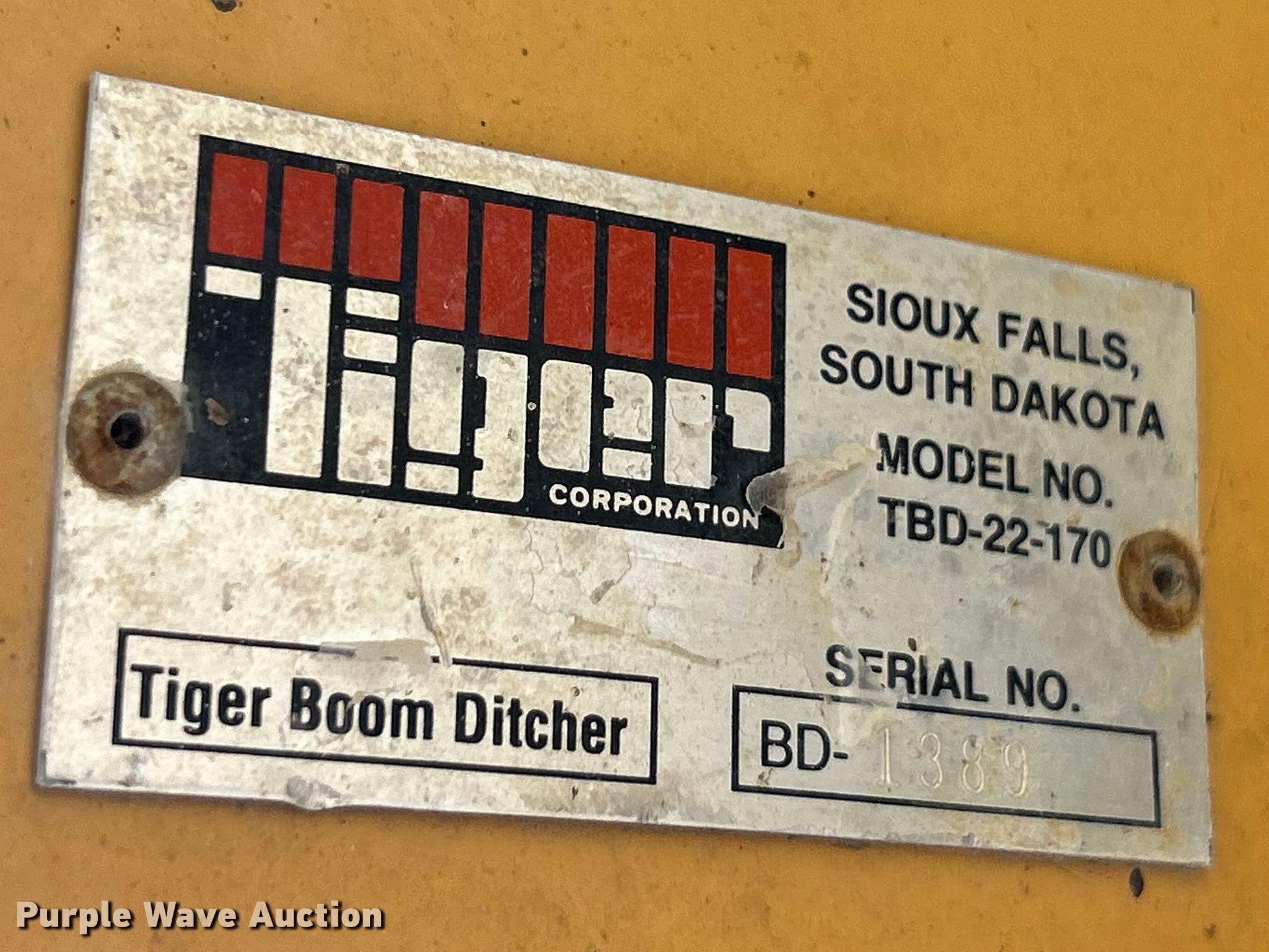 Purple Wave is selling a used Ag Equip. Other in Illinois. This item is a Tiger TBD-22-170 ditcher with the following: Blade diameter: 18", Serial: BD-1389