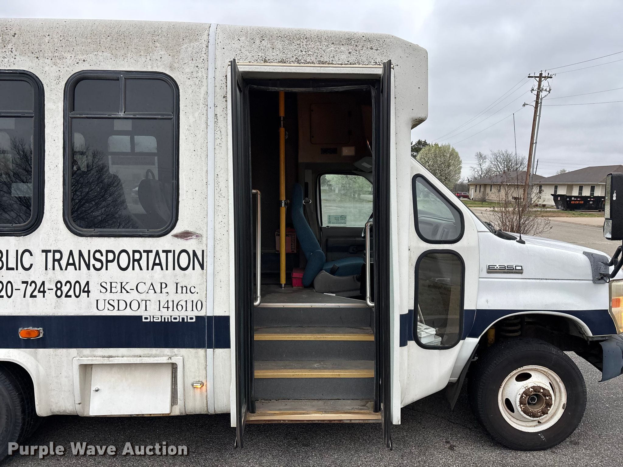 2009 Ford E350 Super Duty shuttle bus. Miles: 155,714 on odometer, VIN: 1FDEE35S49DA37735, Unit #: 68. Engine Ford, Displacement: 6.8L, Cylinders: 10, Fuel type: Gas. Transmission Automatic. Chassis Axles: Single, Suspension: Spring, Brakes: Hydraulic, GVWR: 11,500 lbs. Interior AC, Heat, Heated mirrors, Cruise control, Auxiliary controls, Electric passenger sliding door, Passengers: 12, Wheelchair lift. Tires Size: LT225/75R16. Notes Possible AC issues, needs recharged, Decals will be removed prior to auction date, Service records available upon request, Contents not included, Money box not included, Dash warning indicator: Check engine, ABS. Kansas title. Title distribution may be delayed up to 14 days from verification of funds. SEK-CAP. Girard, KS 66743