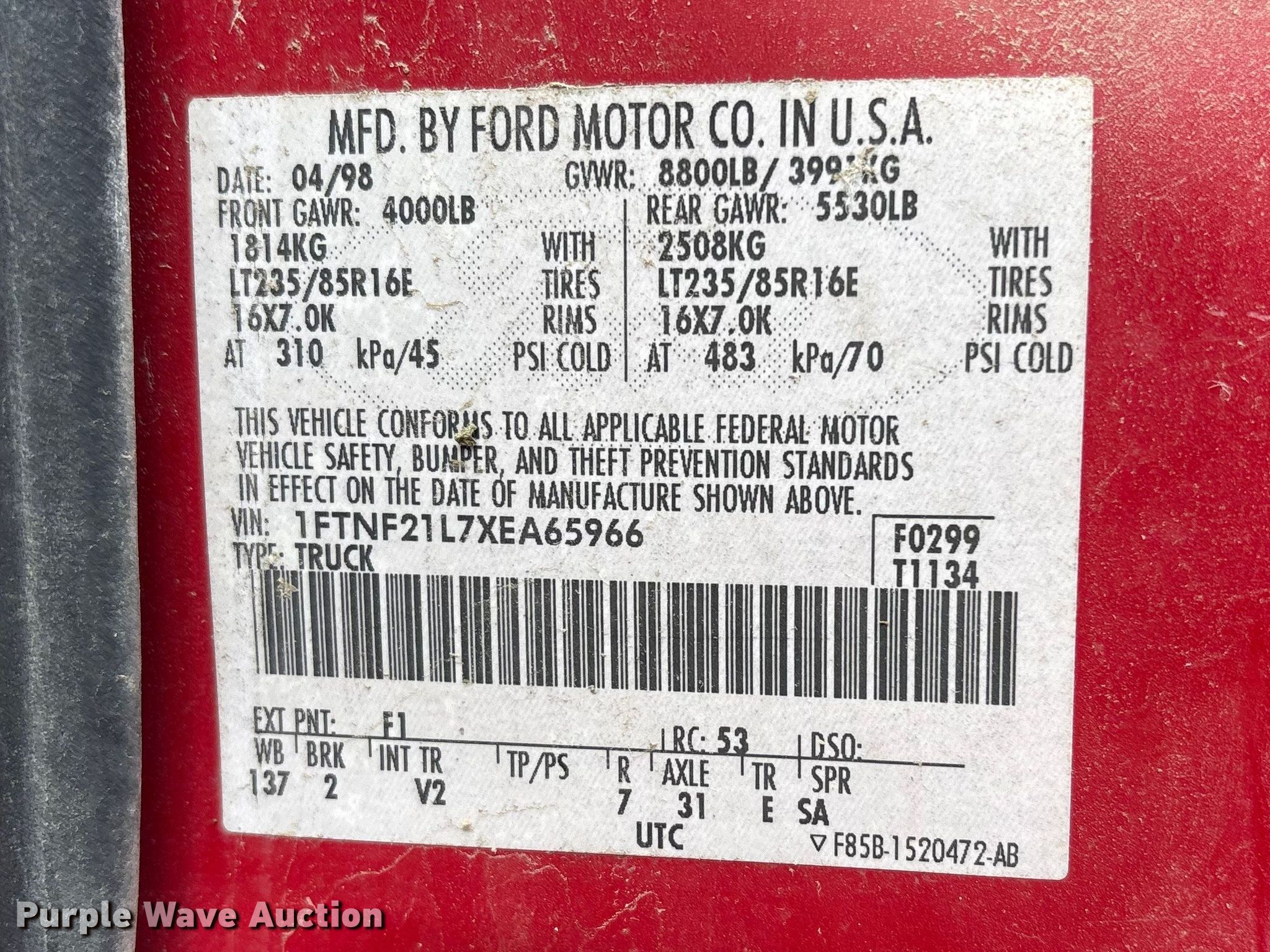 Take a look at this used 1999 Ford F250 Super Duty pickup truck being sold on April 14th, 2026 in the Tuesday April 14 Government Auction made by Ford. Take a look at all of the item information below or take a look at similar auctions for Pickups and Vans.