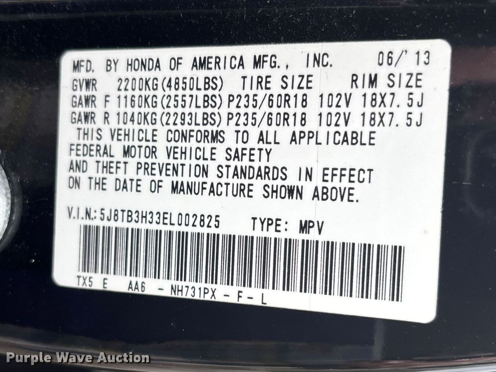 • VIN: 5J8TB3H33EL002825