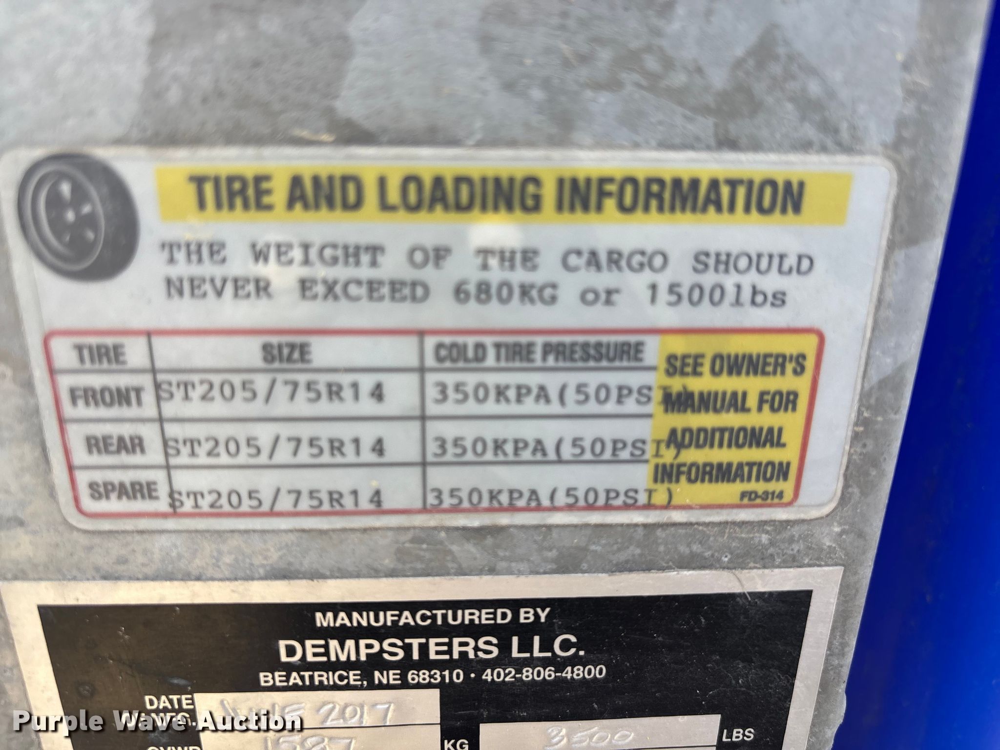 Purple Wave is selling a used Trailer Other in Kansas. This item is a 2017 Alley Cat 17018 recycling trailer with the following: VIN: 1D9RP1814HB388014