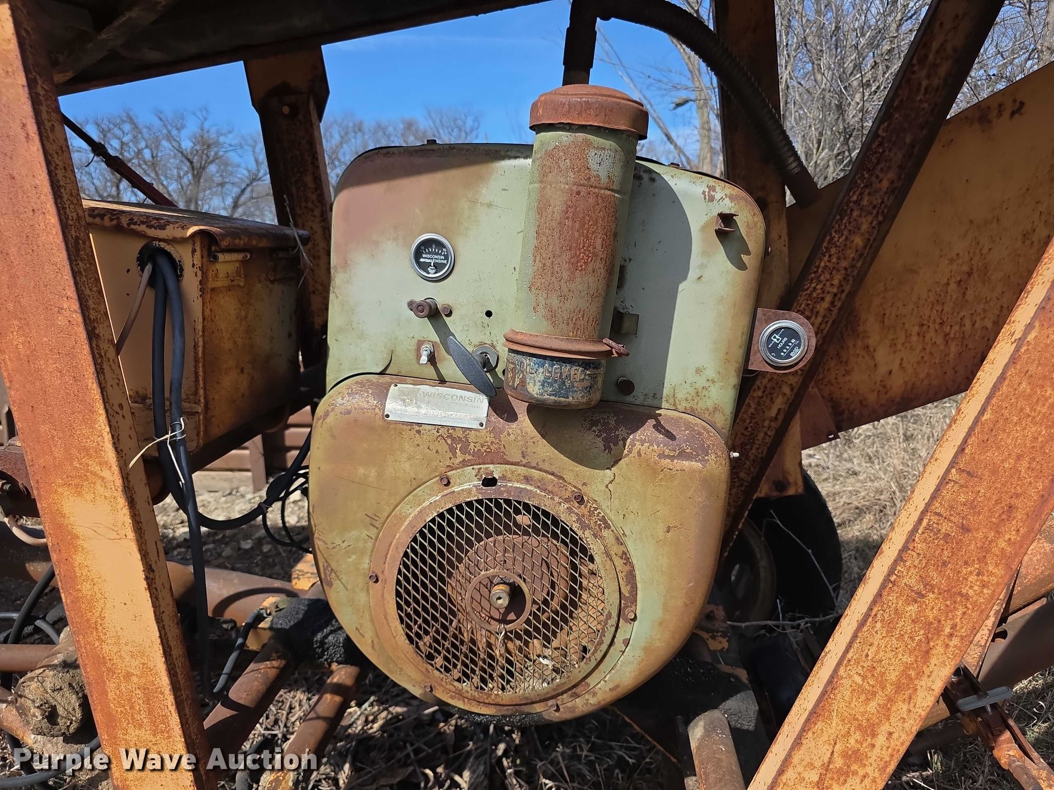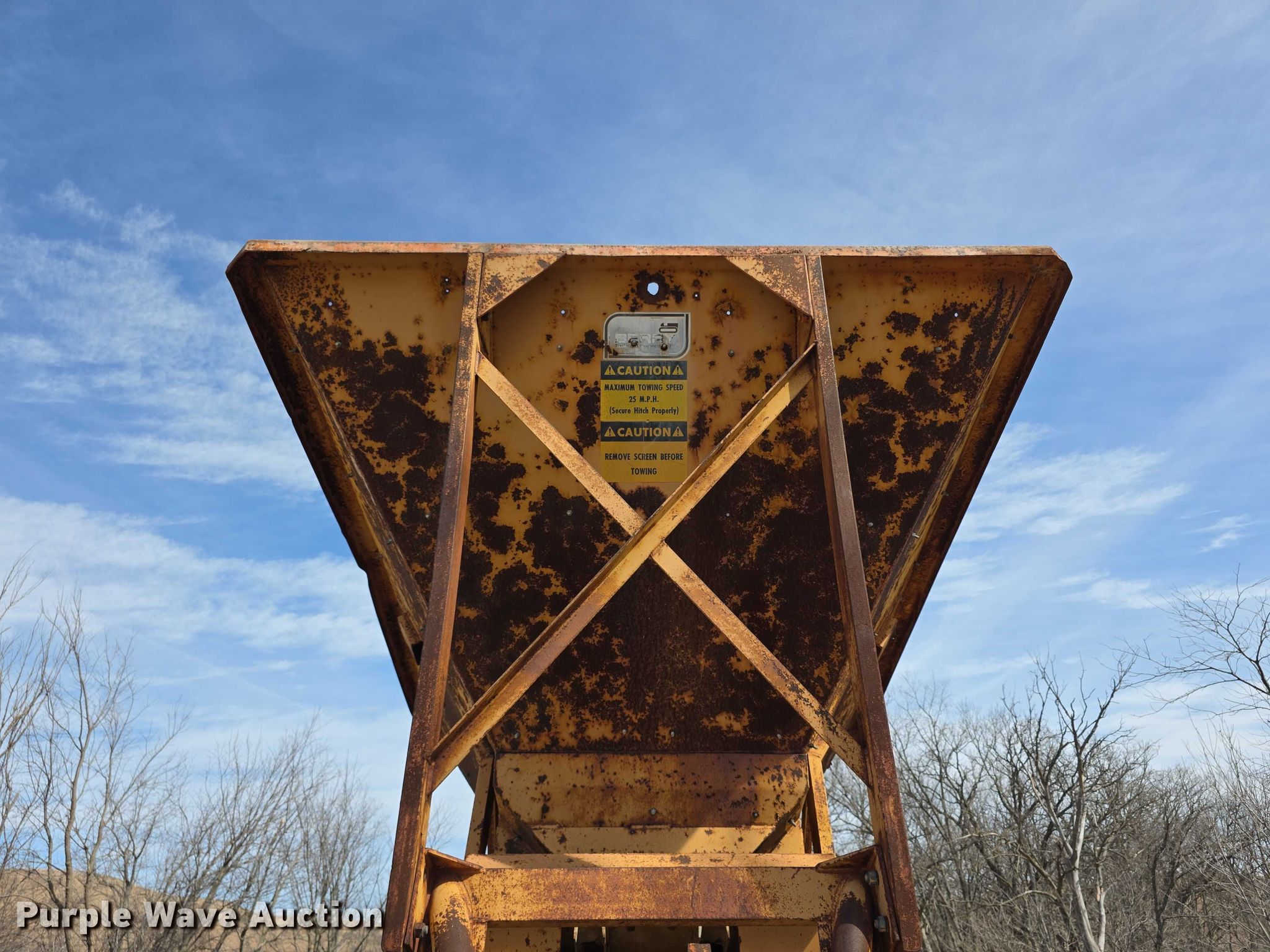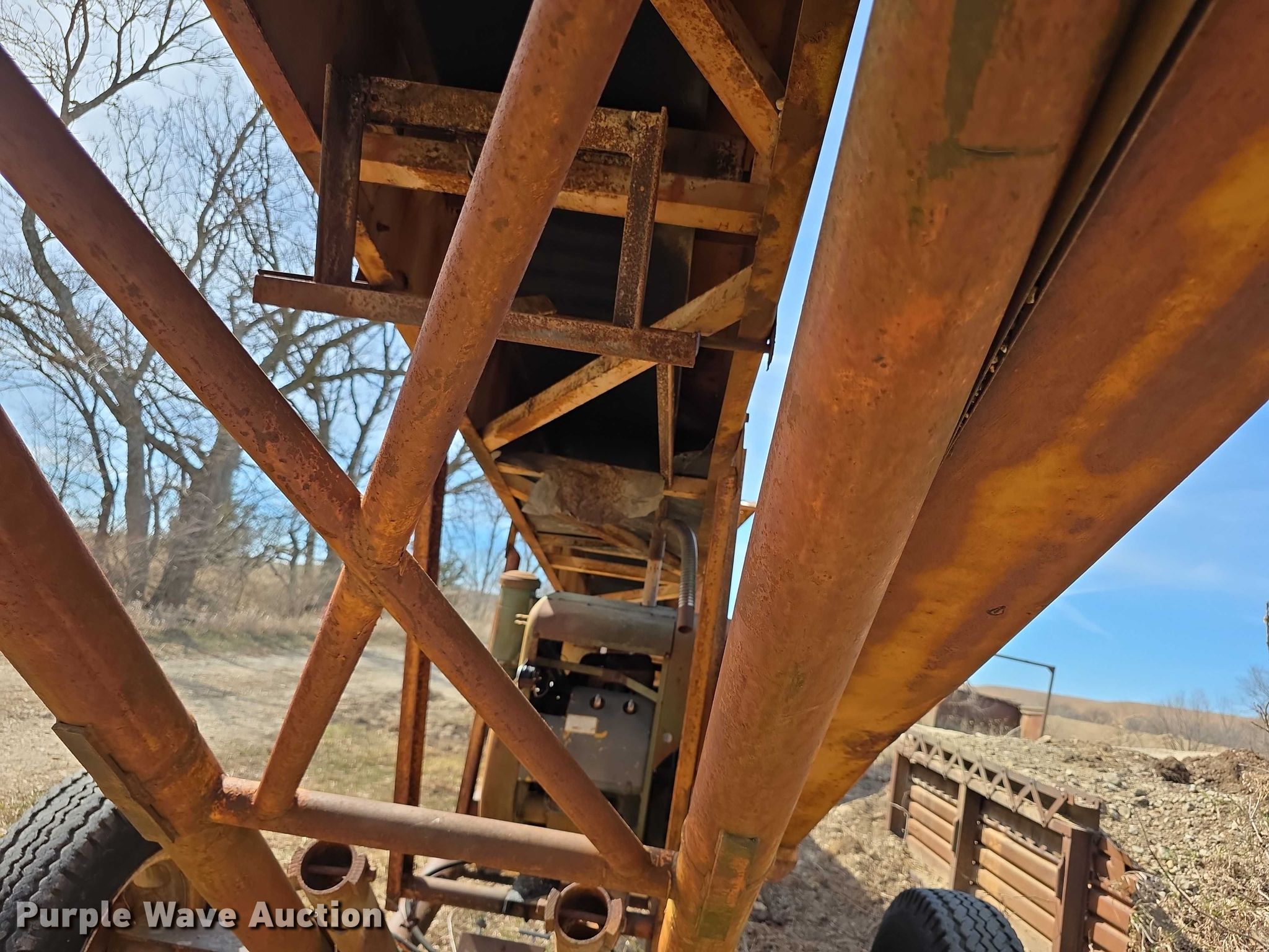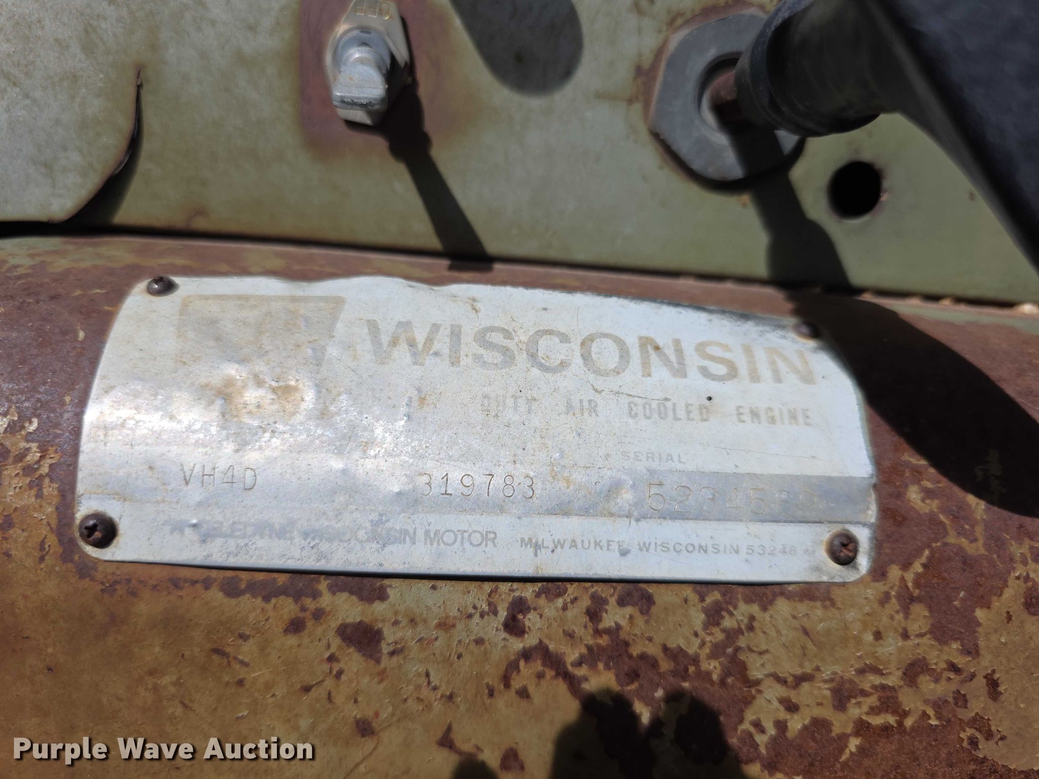 Kolberg 224-P vibrating rock screen. Serial: 1773224P82. Engine Wisconsin VH4D, Serial: 5234569, Cylinders: 4, Fuel type: Gas. Features Input hopper Hours: 8045, Hitch: Pin, Length: 10', Width: 6', Vibrating, RPM: 65, Discharge: 44' L x 16" W, Rear vibratory screen Size: 13' x 41", Model: 2D-366, Serial: 1996-36-6-82-2, RPM: 400-1600, Grizzly bar screen Dimensions: 11' L x 11' L x 10", Rock containment box DImensions: 11' 2" L x 10' 2" x 9' 6" W. Tires Size: 9.00-20, Brand: Firestone. Notes Non-operational unit, Non-operational engine. Wabaunsee County Road & Bridge. Alma, KS 66401
