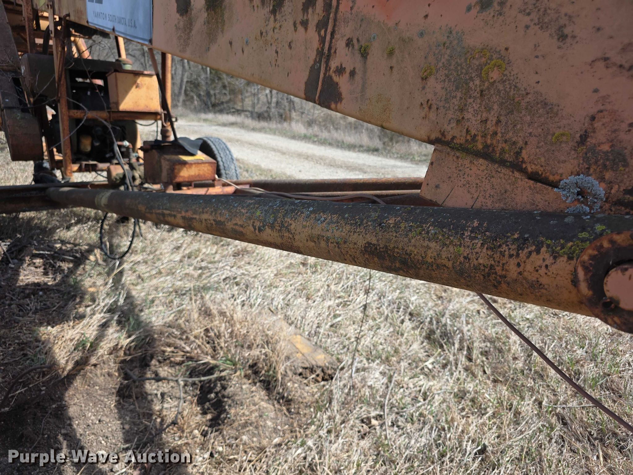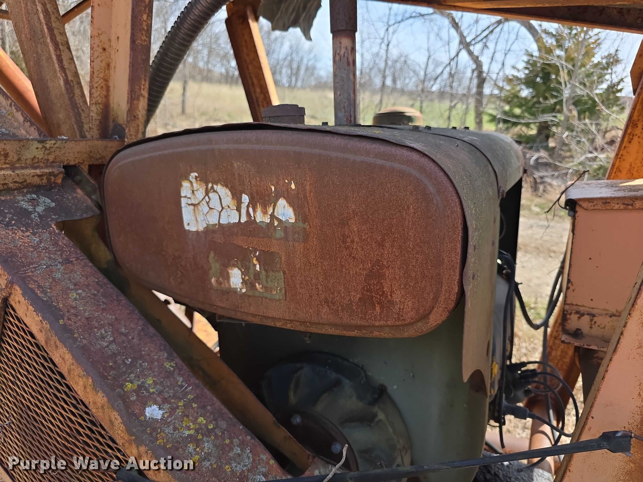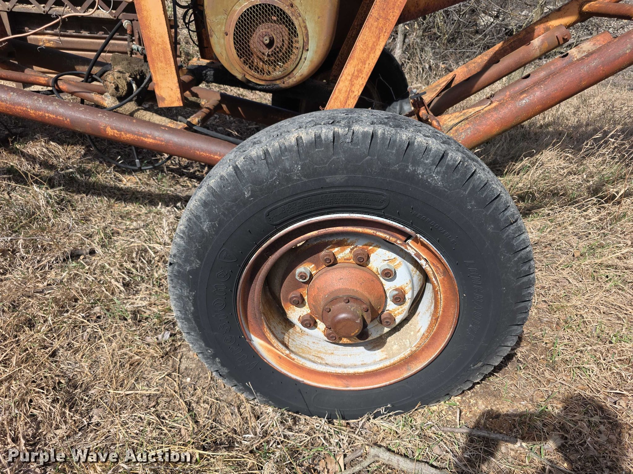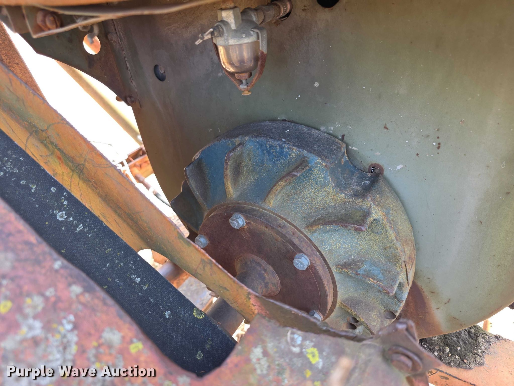 Kolberg 224-P vibrating rock screen. Serial: 1773224P82. Engine Wisconsin VH4D, Serial: 5234569, Cylinders: 4, Fuel type: Gas. Features Input hopper Hours: 8045, Hitch: Pin, Length: 10', Width: 6', Vibrating, RPM: 65, Discharge: 44' L x 16" W, Rear vibratory screen Size: 13' x 41", Model: 2D-366, Serial: 1996-36-6-82-2, RPM: 400-1600, Grizzly bar screen Dimensions: 11' L x 11' L x 10", Rock containment box DImensions: 11' 2" L x 10' 2" x 9' 6" W. Tires Size: 9.00-20, Brand: Firestone. Notes Non-operational unit, Non-operational engine. Wabaunsee County Road & Bridge. Alma, KS 66401