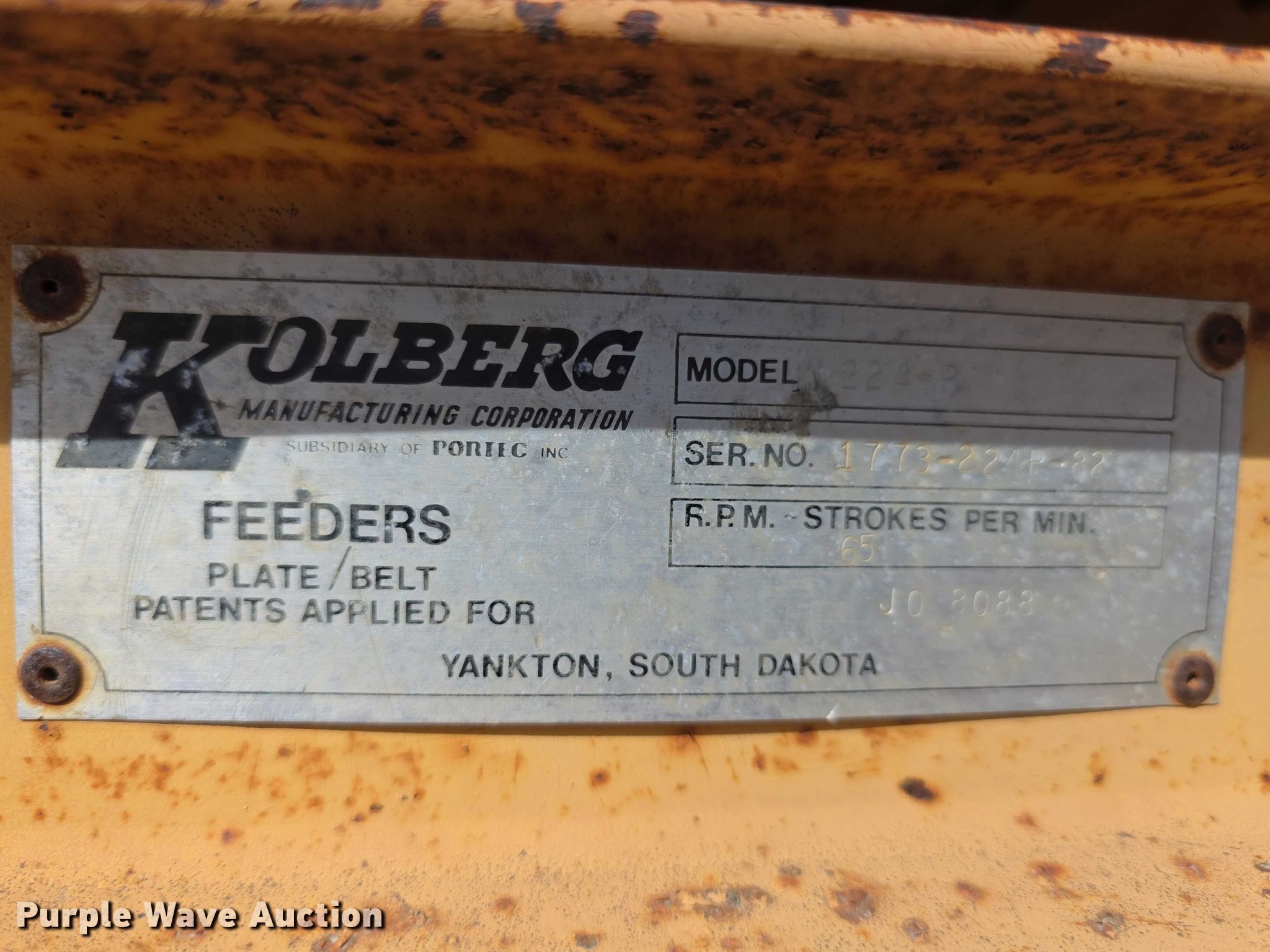 Purple Wave is selling a used Screen or Screening Plant in Kansas. This item is a Kolberg 224-P vibrating rock screen with the following: Serial: 1773224P82