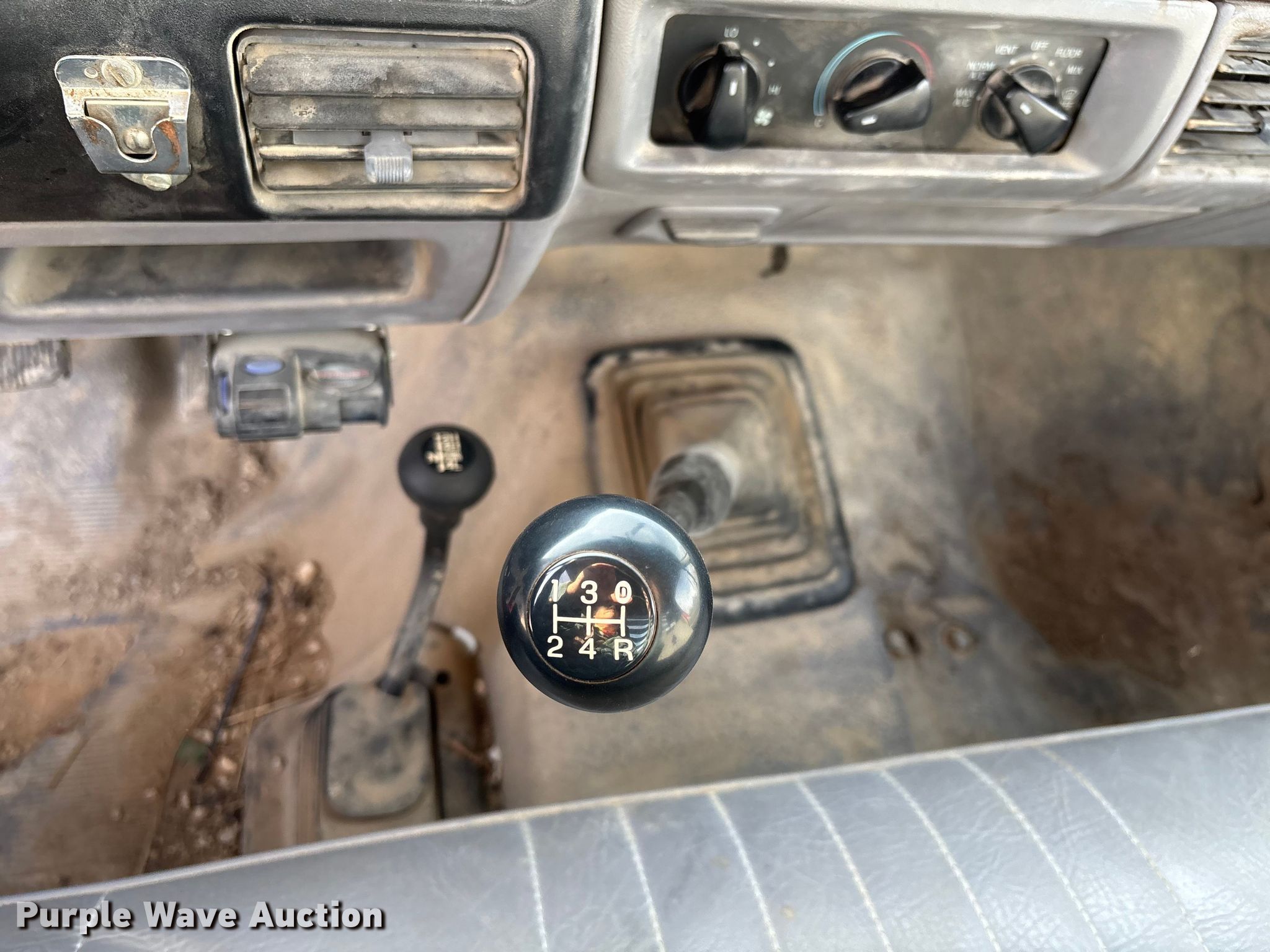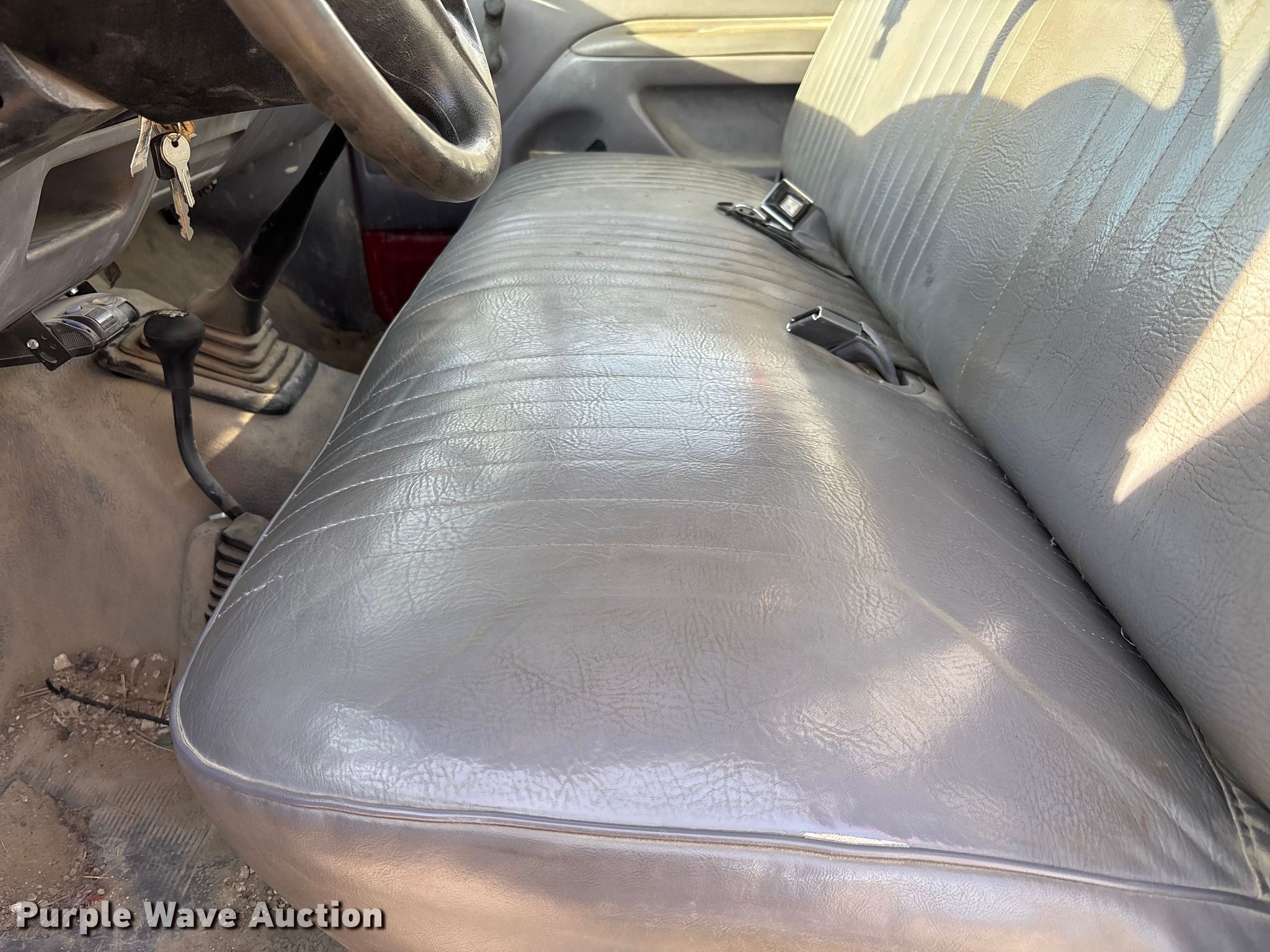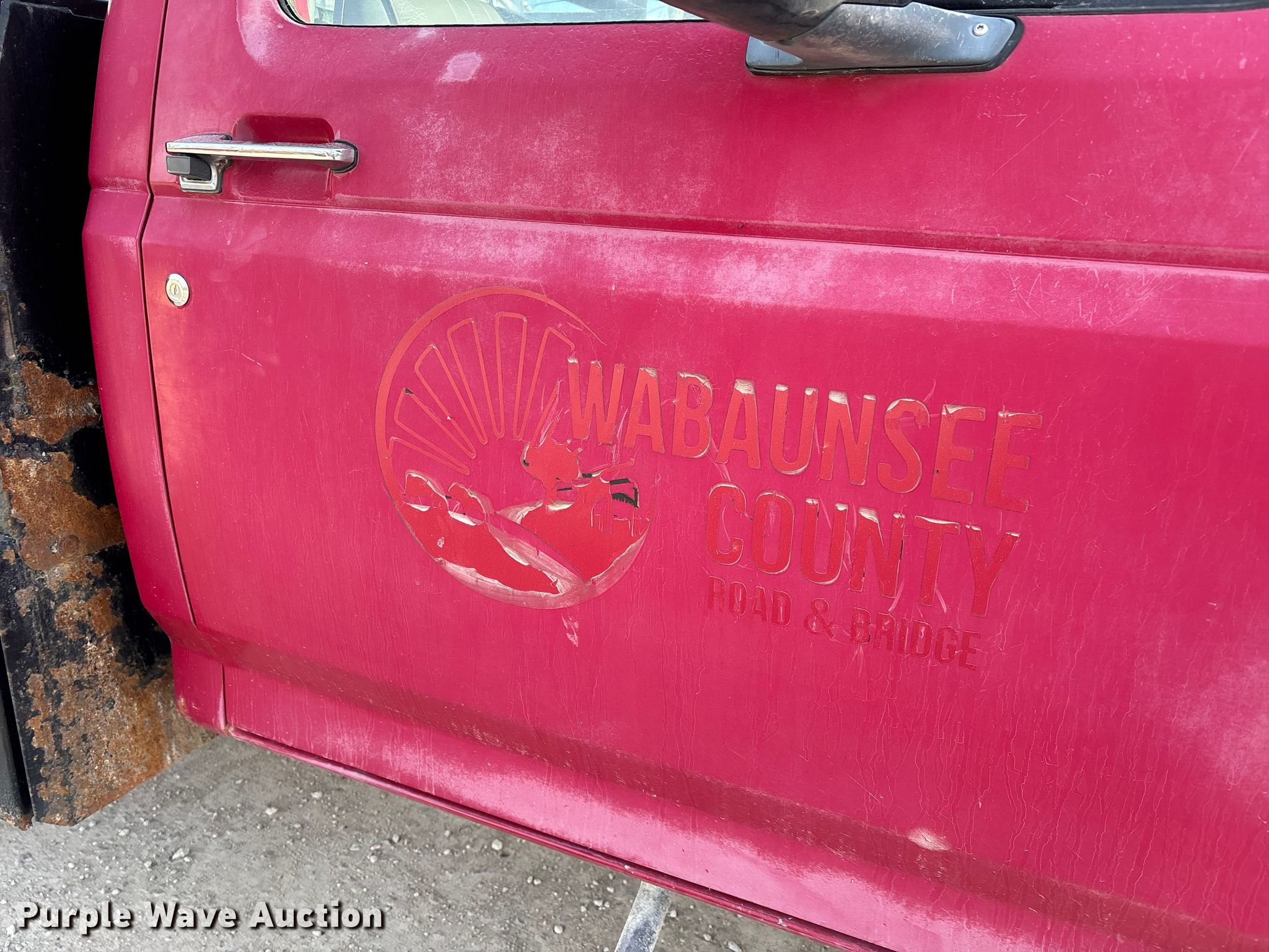 1994 Ford F350 XL flatbed pickup truck. Miles: 123,877 on odometer, VIN: 1FTHF36G1RNA83588, Unit #: 142. Engine Displacement: 7.5L, Cylinders: 8, Fuel type: Gas. Transmission Manual, Speed: 5, Four wheel drive. Interior Heat, Cruise control. Features Bed Flatbed, Winkel, Length: 8' 6", Width: 7' 2", Height: 6", Hitch: Gooseneck. Tires Size: 235 85r16. Notes Non-operational AC, Floorboard damage, rust. Kansas rebuilt salvage title. Title distribution may be delayed up to 14 days from verification of funds. Wabaunsee County Road & Bridge. Alma, KS 66401