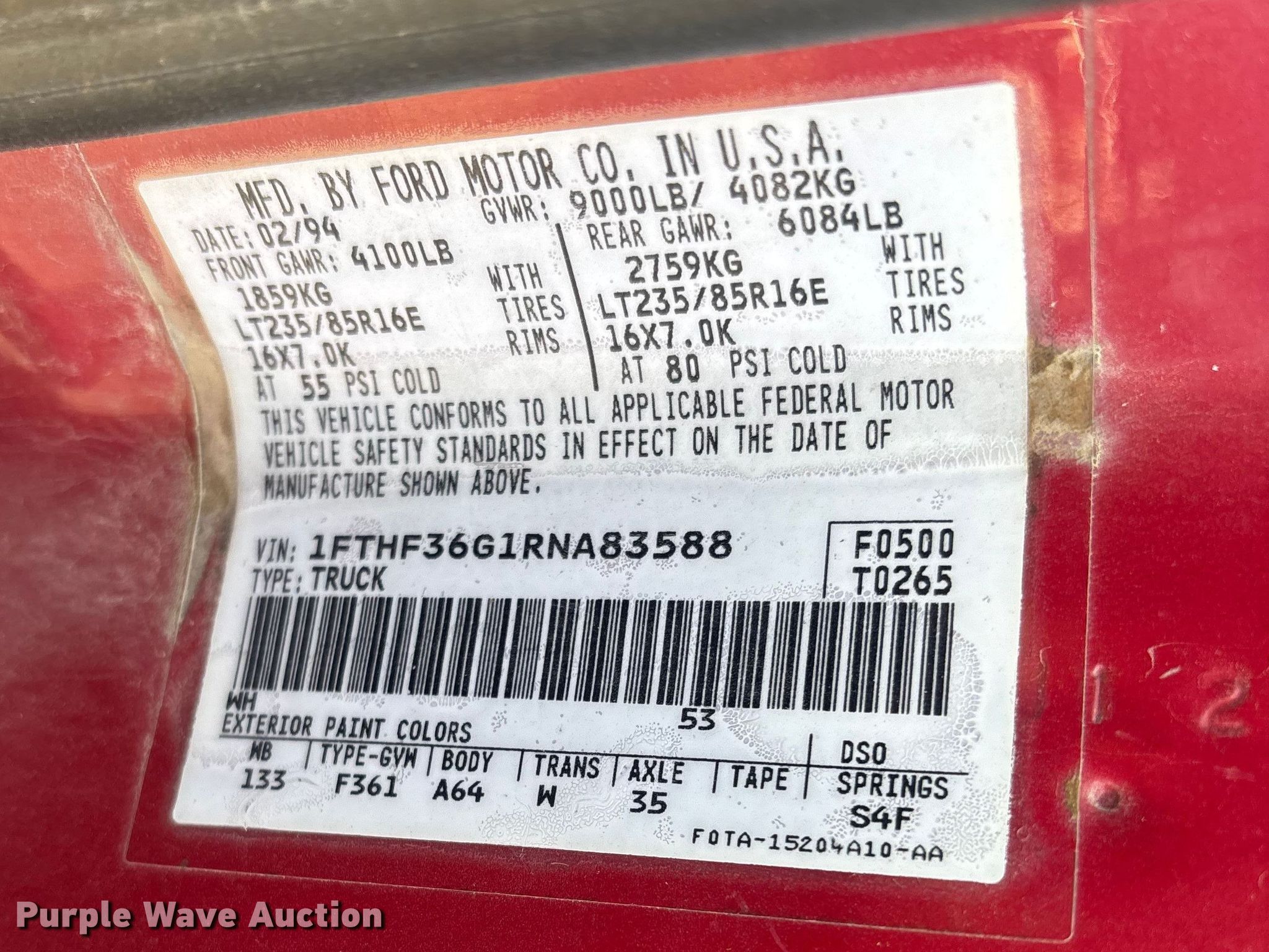Purple Wave is selling a used 3/4 or 1 Ton Pickup or Van in Kansas. This item is a 1994 Ford F350 XL flatbed pickup truck with the following: Miles: 123,877 on odometer, VIN: 1FTHF36G1RNA83588, Unit #: 142