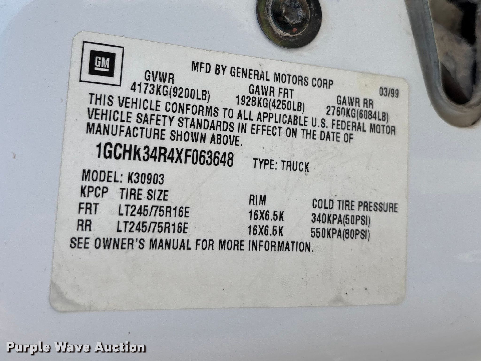 Purple Wave is selling a used 1/2 Ton Pickup or Van in Kansas. This item is a 1999 Chevrolet K3500 pickup truck with the following: Miles: 77,202 on odometer, VIN: 1GCHK34R4XF063648